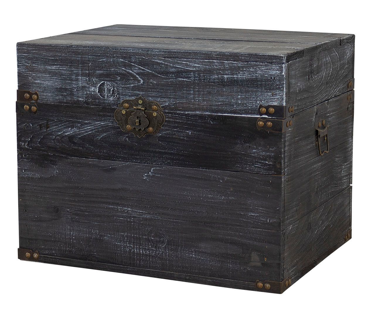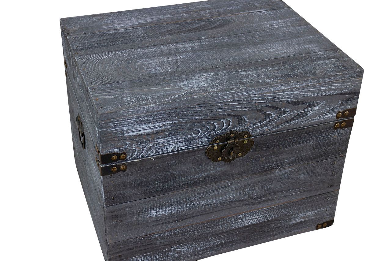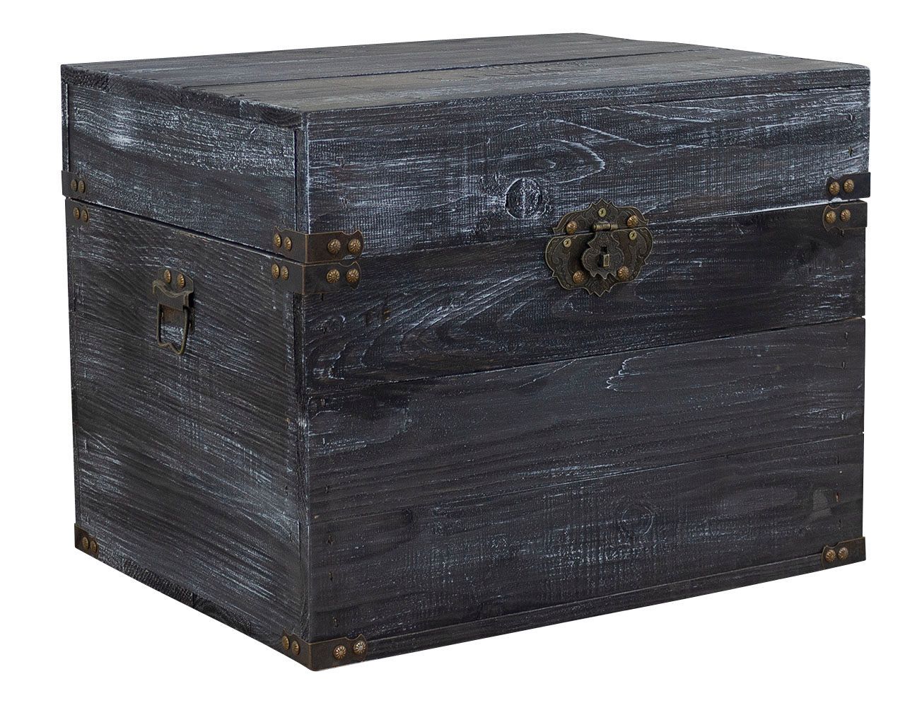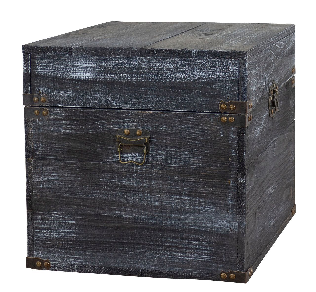 Holztruhe Elsa schwarz shabby Schatztruhe Holzkiste mit Deckel Aufbewahrungskiste