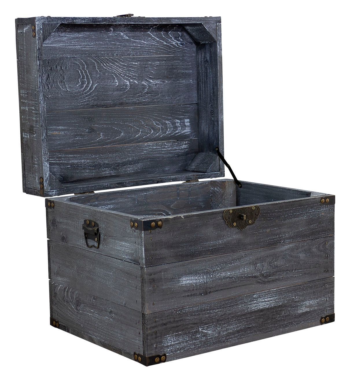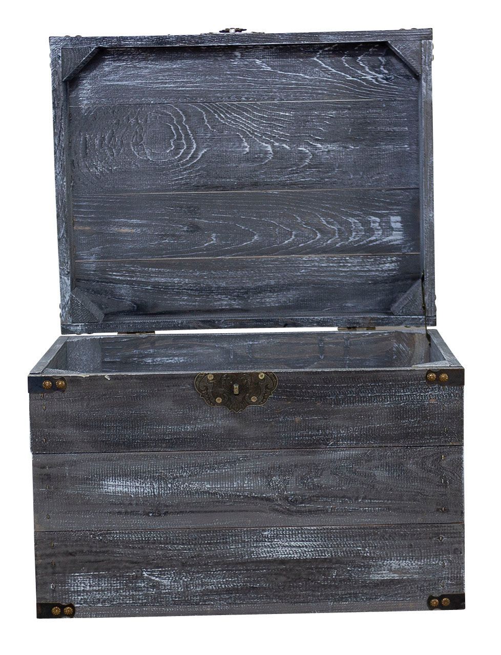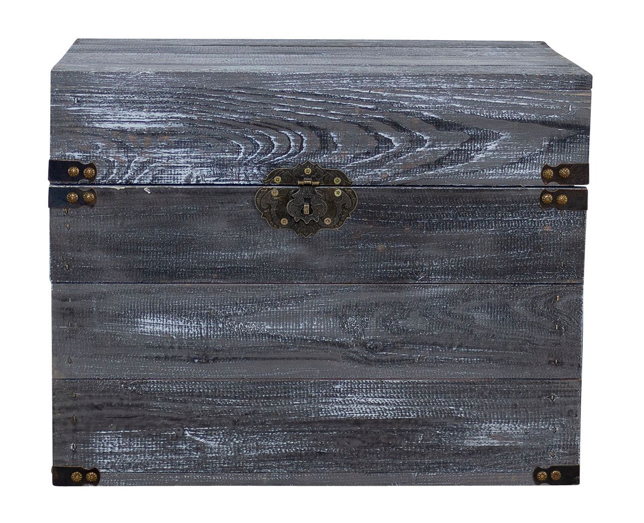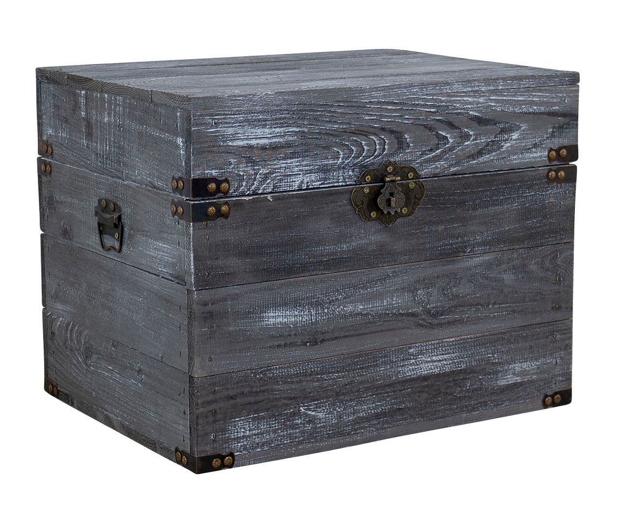 Holztruhe Elsa schwarz shabby Schatztruhe Holzkiste mit Deckel Aufbewahrungskiste