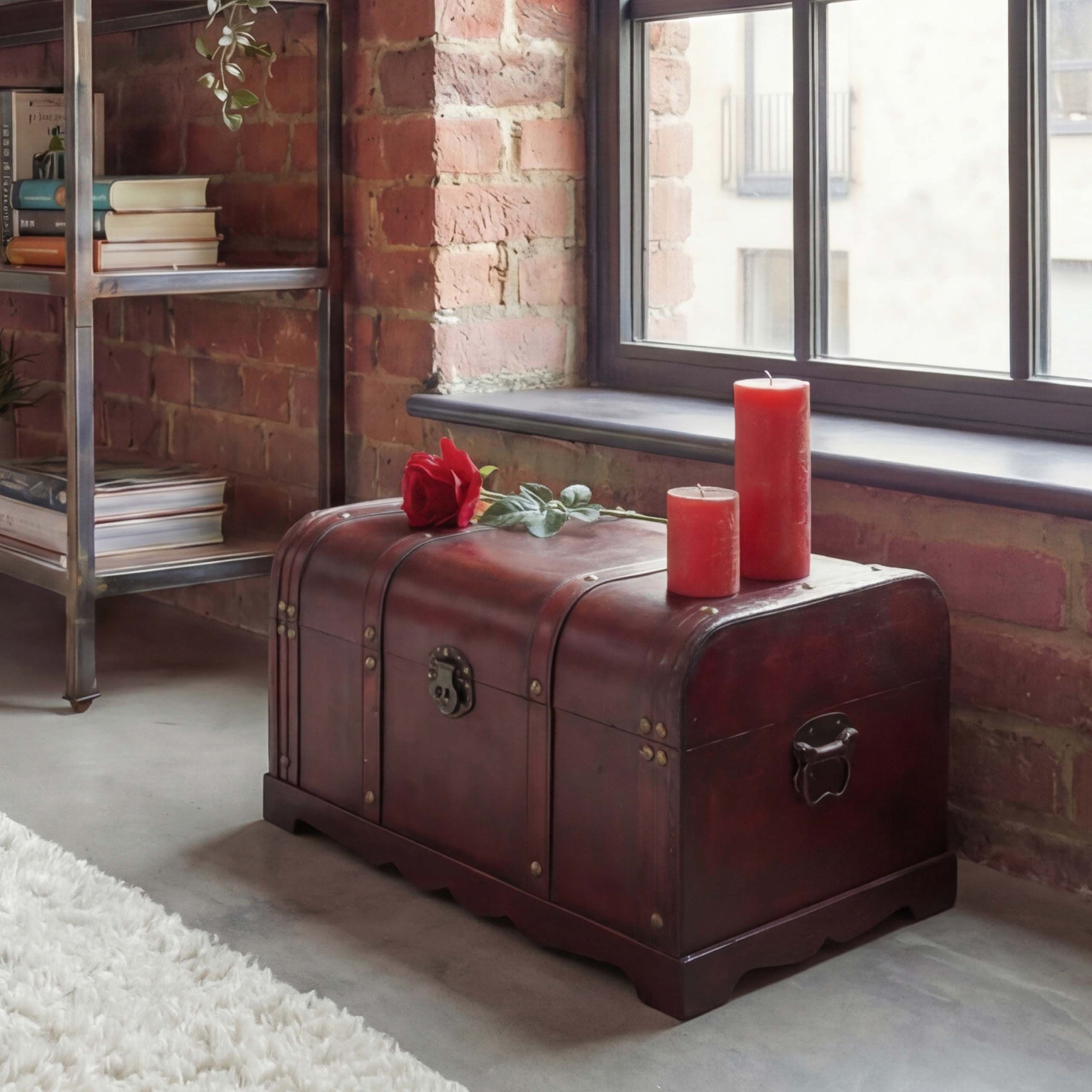 Mendler Holztruhe Holzbox Valence Antikoptik 30x57x29cm