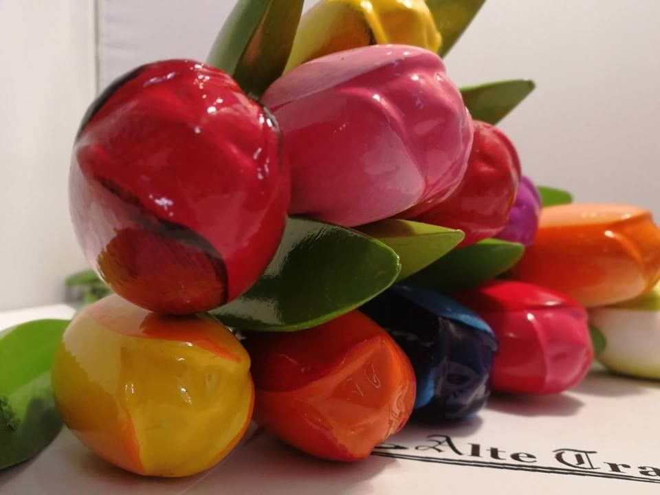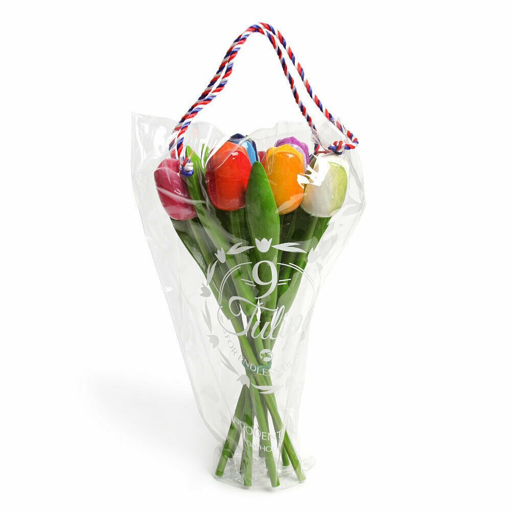 Holztulpen Tulpen 34 cm Geschenk 9er Strauß Wood Tulip Deko Geschenk zum Geburtstag