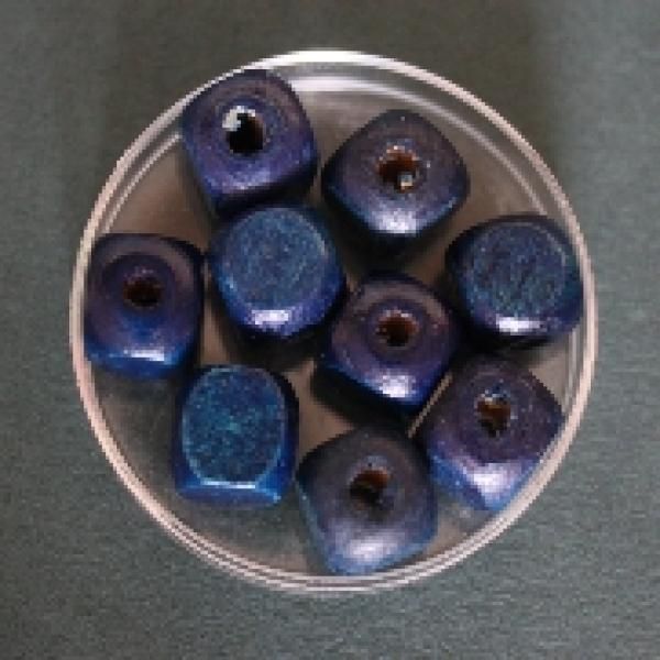1 Beutel Holzwürfelchen, Inhalt 35 Stück, Farbe blau. Die Holzwürfelchen haben eine Größe 10 x 10 mm.