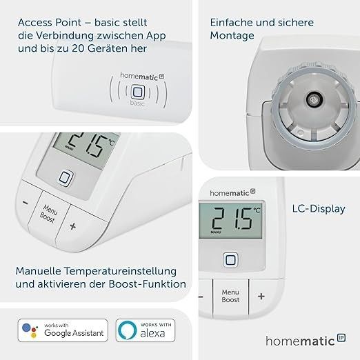 Homematic IP Smart Home Heating Starter Set - Basic, Digital Control for Heating - EuroEuro Homematic IP Basic Smart Radiator Thermostat – Effortless Comfort, Maximum Efficiency Upgrade your home climate control with the Homematic IP Basic Smart Thermostat , designed for intelligent heating wi