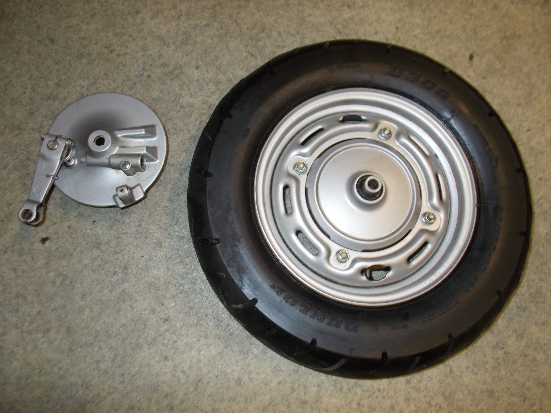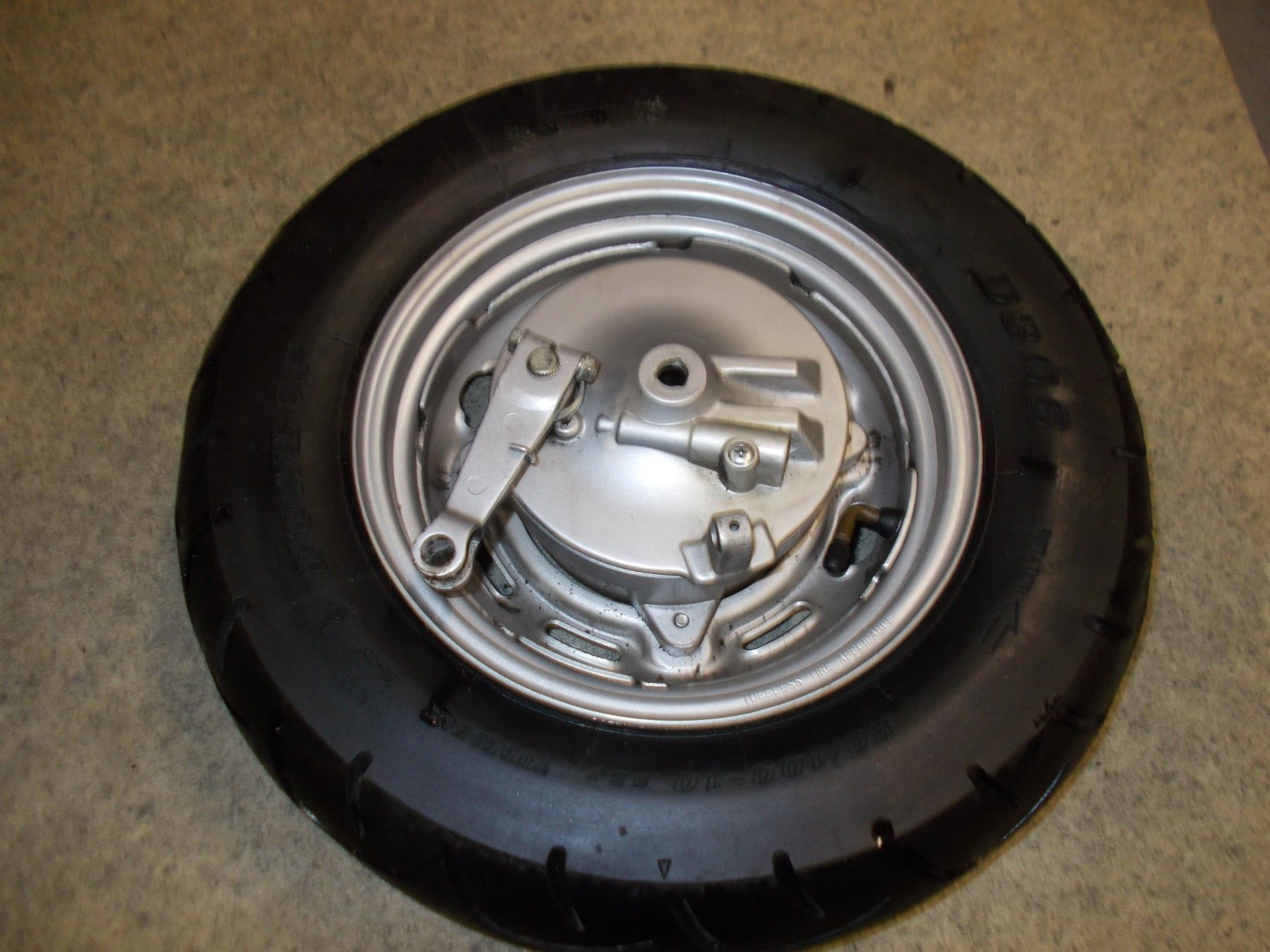 Gebrauchte Felge incl. Bremsnabe/Trommelbremse und Reifen von einem Motorroller Honda Lead 100ccm Typ JF11. Topzustand nur der reifen könnte mal neu wegen des Alters. Reifen 90/100-10 DOT26/04 Profiltiefe ca. 80% in der Mitte.