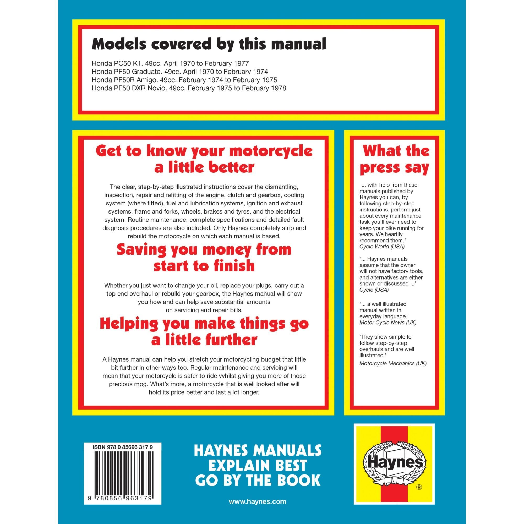 Honda PC50 PF50 R/DXR Viertakter (70-78) UK Moped Mofa Reparaturanleitung Haynes