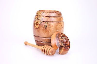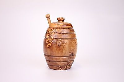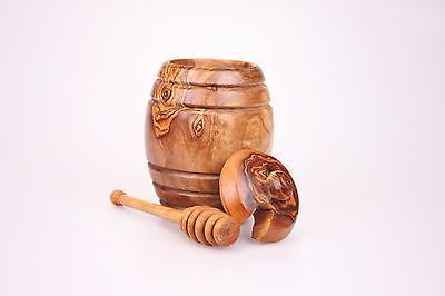 Honigtopf 3-teilig inkl. Honiglöffel / Honigheber aus Olivenholz Honigdose Holz