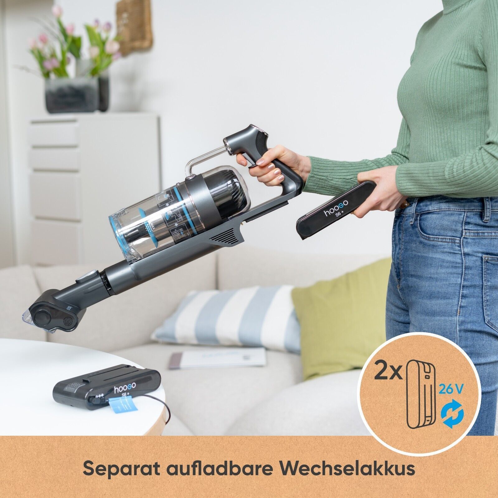 hoogo S6+ 2in1 Akku-Staubsauger | beutellos kabellos | Laufzeit bis zu 100 min
