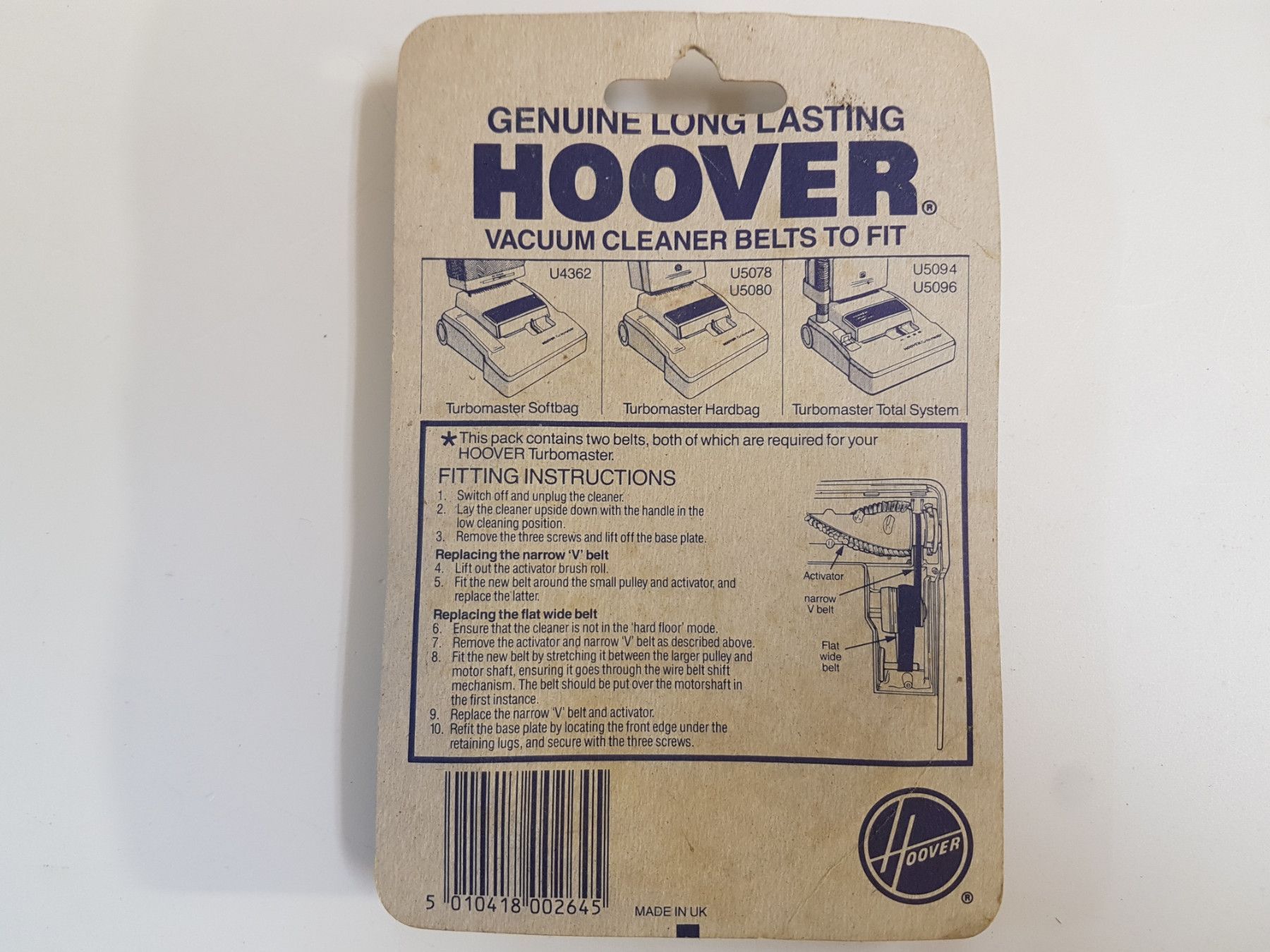 original verpacktes Riemen Set von Hoover Ersatzteilnummer: 677120BP Set besteht aus 2 Riemen mit folgenden Ersatzteilnummern Zahnriemen: 38528-523 Flachriemen: 38528-517 passend für folgende Geräte: U4362 Turbomaster Softbag U5078 Turbomaster Hardbag U5080 Turbomaster Hardbag U5094 Turbomaster Tota... Mehr