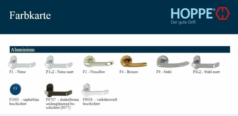 Hoppe Birmingham Kurzschild Garnitur F1 oder F2 Türgriff Türklinge BB PZ WC HOPPE KURZSCHILD-GARNITUR BIRMINGHAM IN F1 ODER F2 IN DEN VARIANTEN BB PZ ODER WC-BAD HOPPE-Aluminium-Kurzschild-Türgriff-Garnitur für Innentüren: • Lagerung: Türgriffe lose, wartungsfreie Gleitlager • Verbindung: