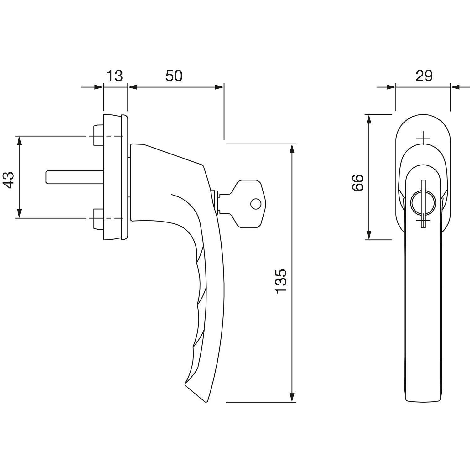 Hoppe Hoppe Fenstergriff LIÈGE Sperrzylinder Vierkant 7x40 35 Nm silber eloxiert