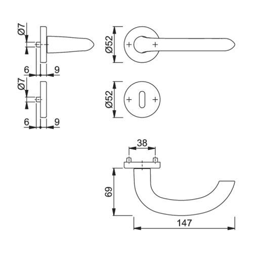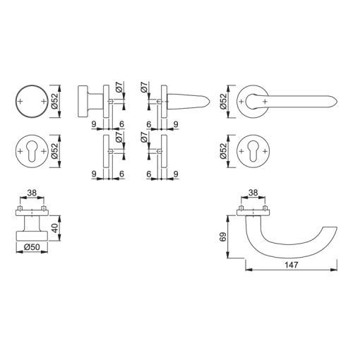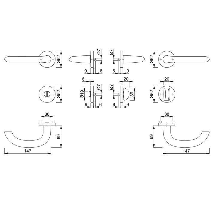 HOPPE Hoppe Marseille Türdrücker Wechselgarnitur Rosette Alu F1 Türklinke