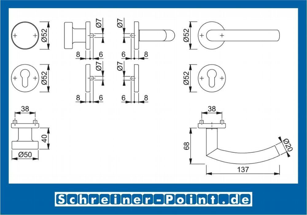 8/72 Türgriff Türklinke Griff Beschlag Zimmertürgriff Edelstahl matt