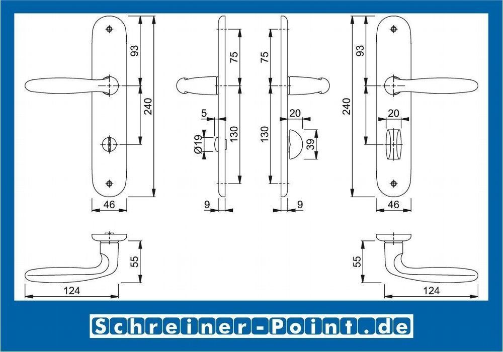 Hoppe Hoppe Verona Aluminium Alu F9 Stahlfarben Langschild 1510/273P Bad / WC Garnitur