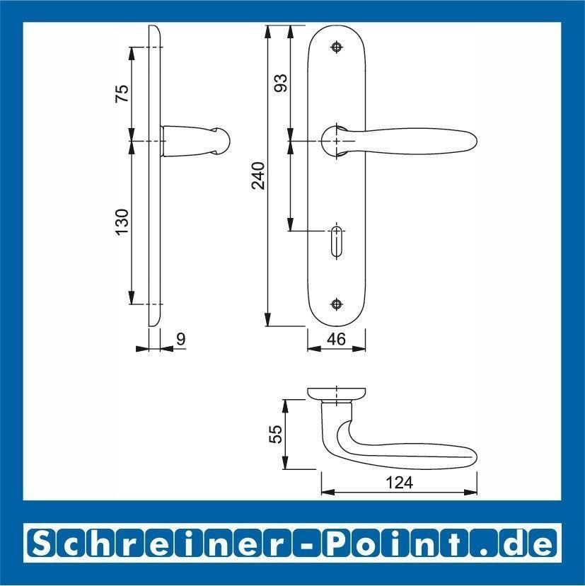 Hoppe Hoppe Verona Aluminium F9 Stahlfarben Langschild 1510/273P BB Buntbart OB
