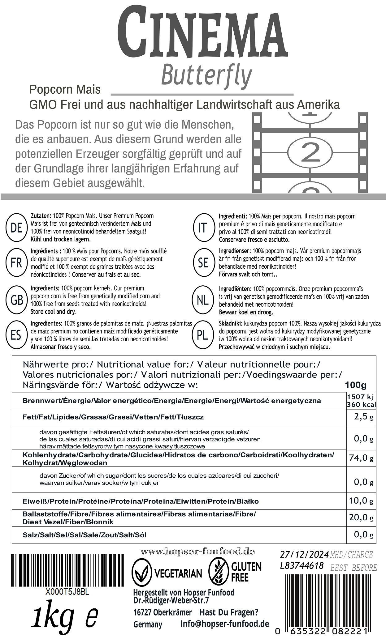 Hopser Funfood Butterfly Popcornmais 1kg | großflockig | Kino Popcorn selber machen