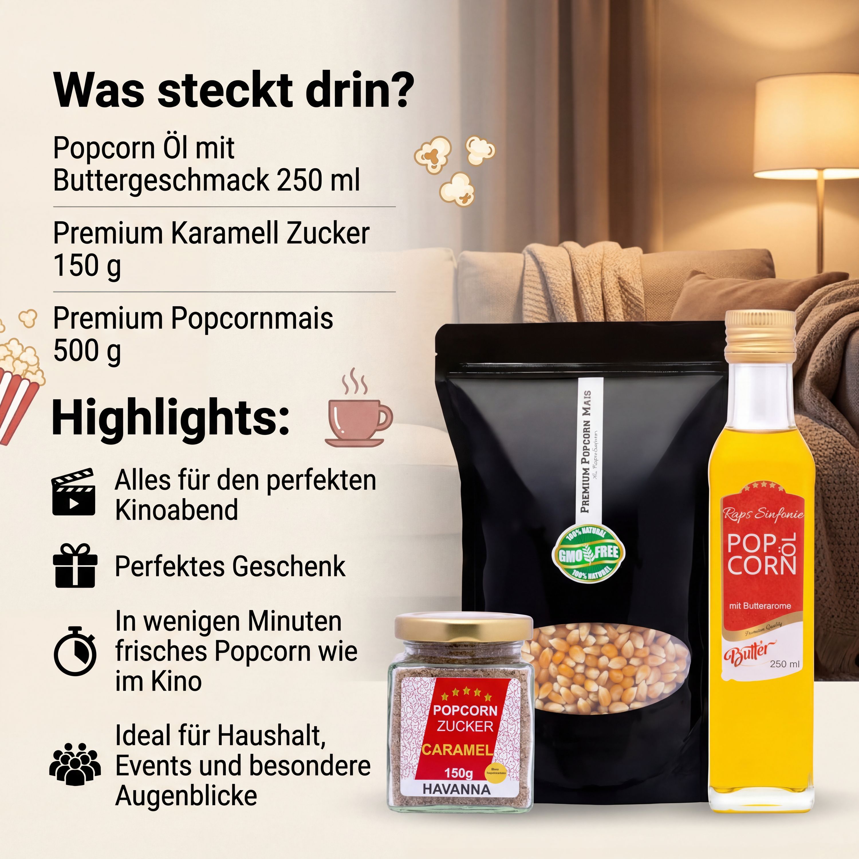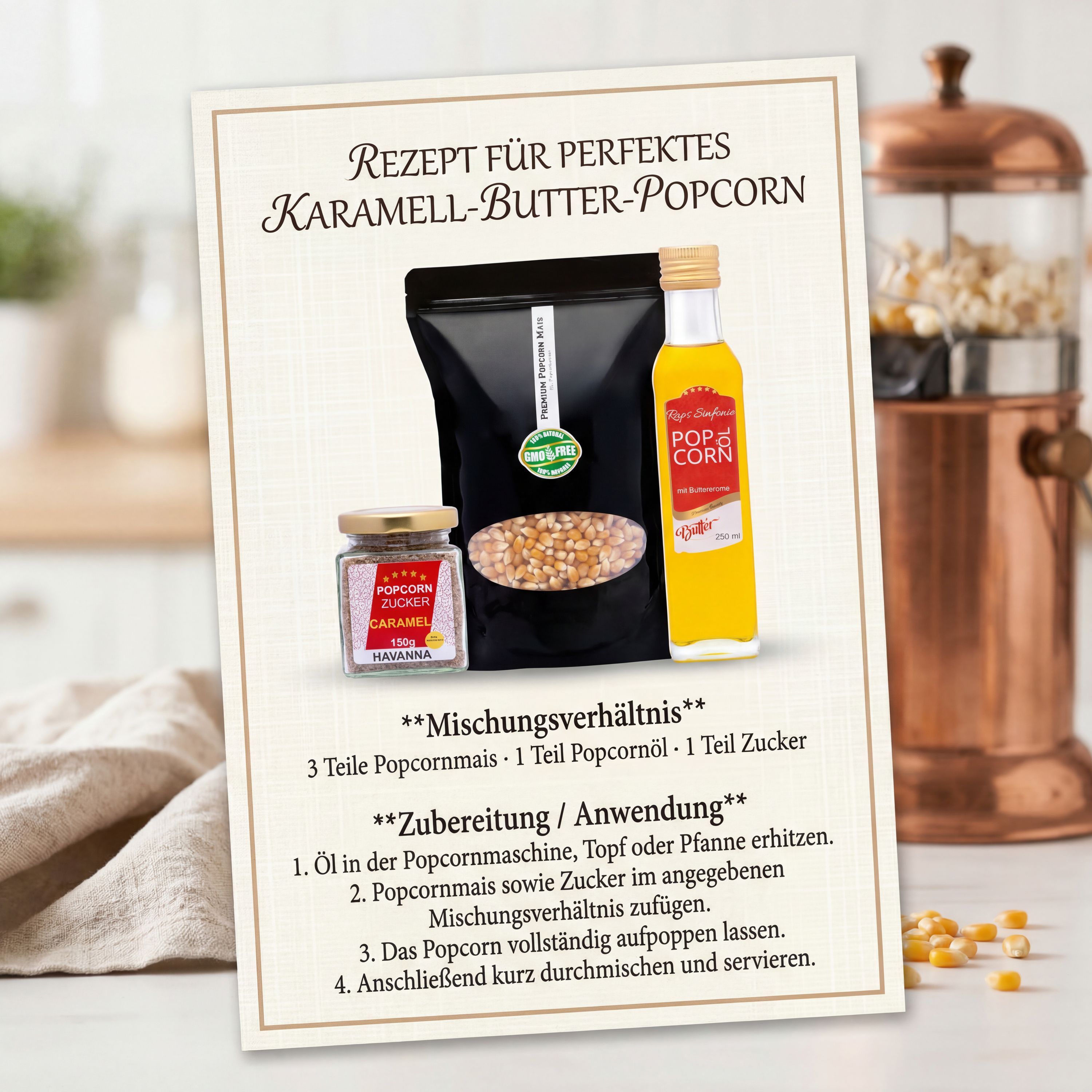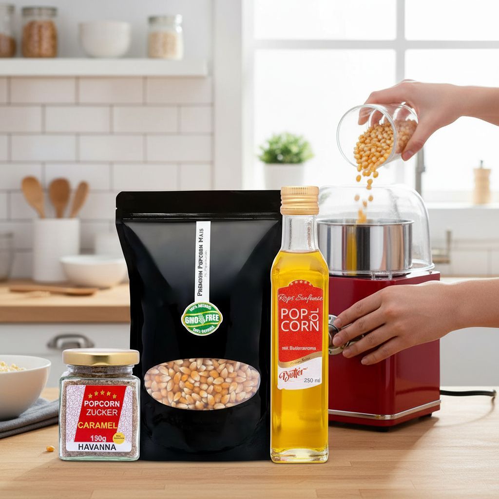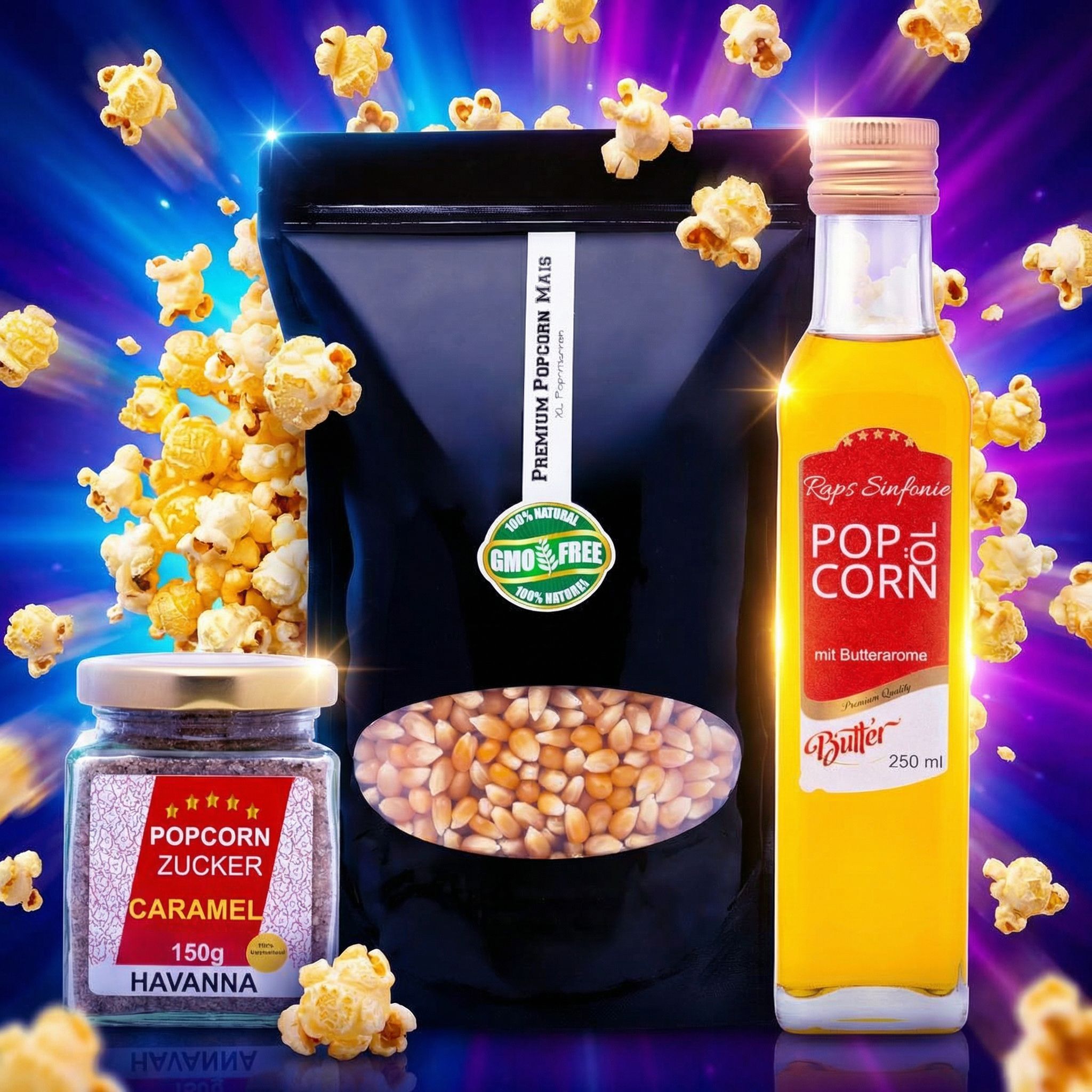 Hopser Funfood Popcorn Set Popcornmais Popcornöl Butteraroma & Karamellzucker