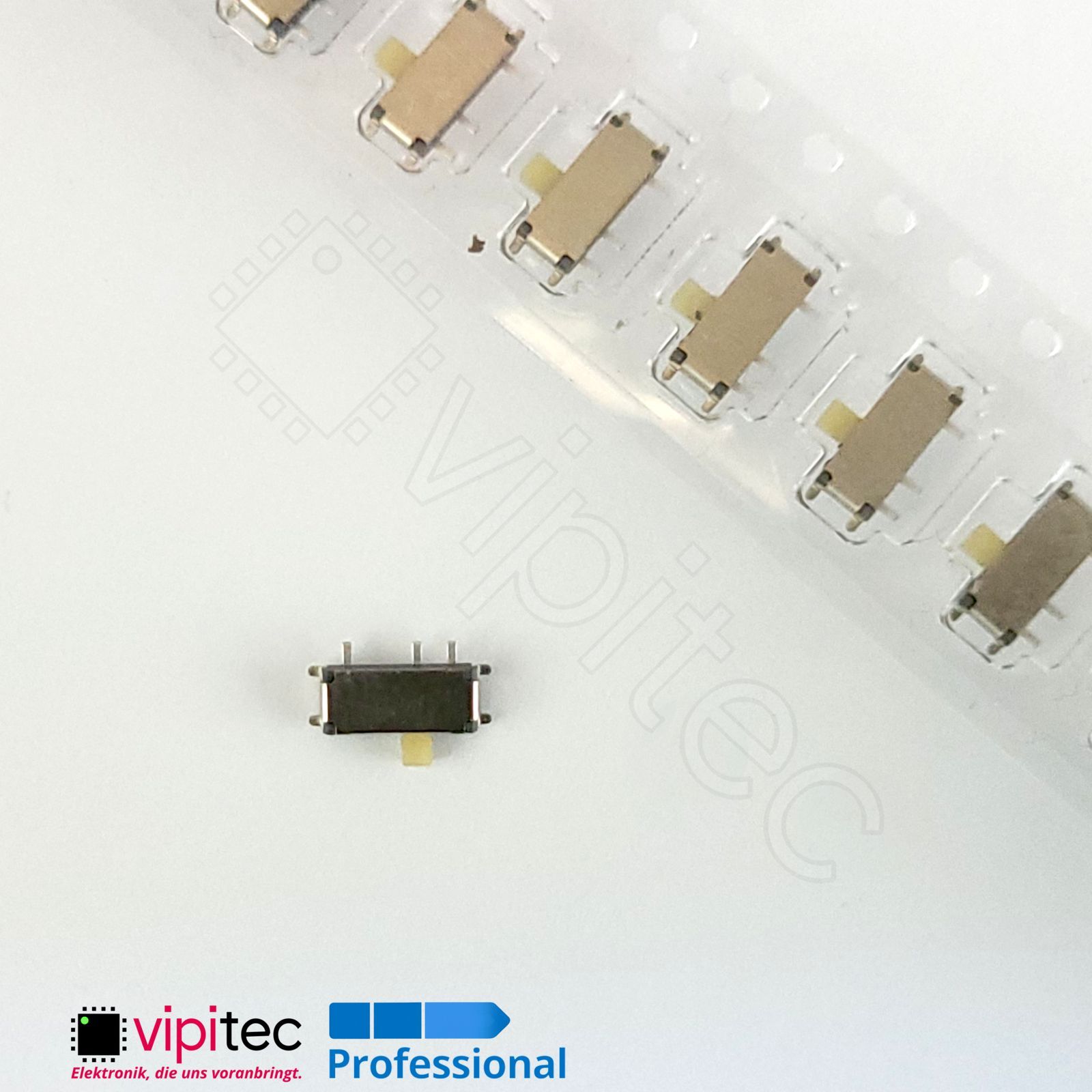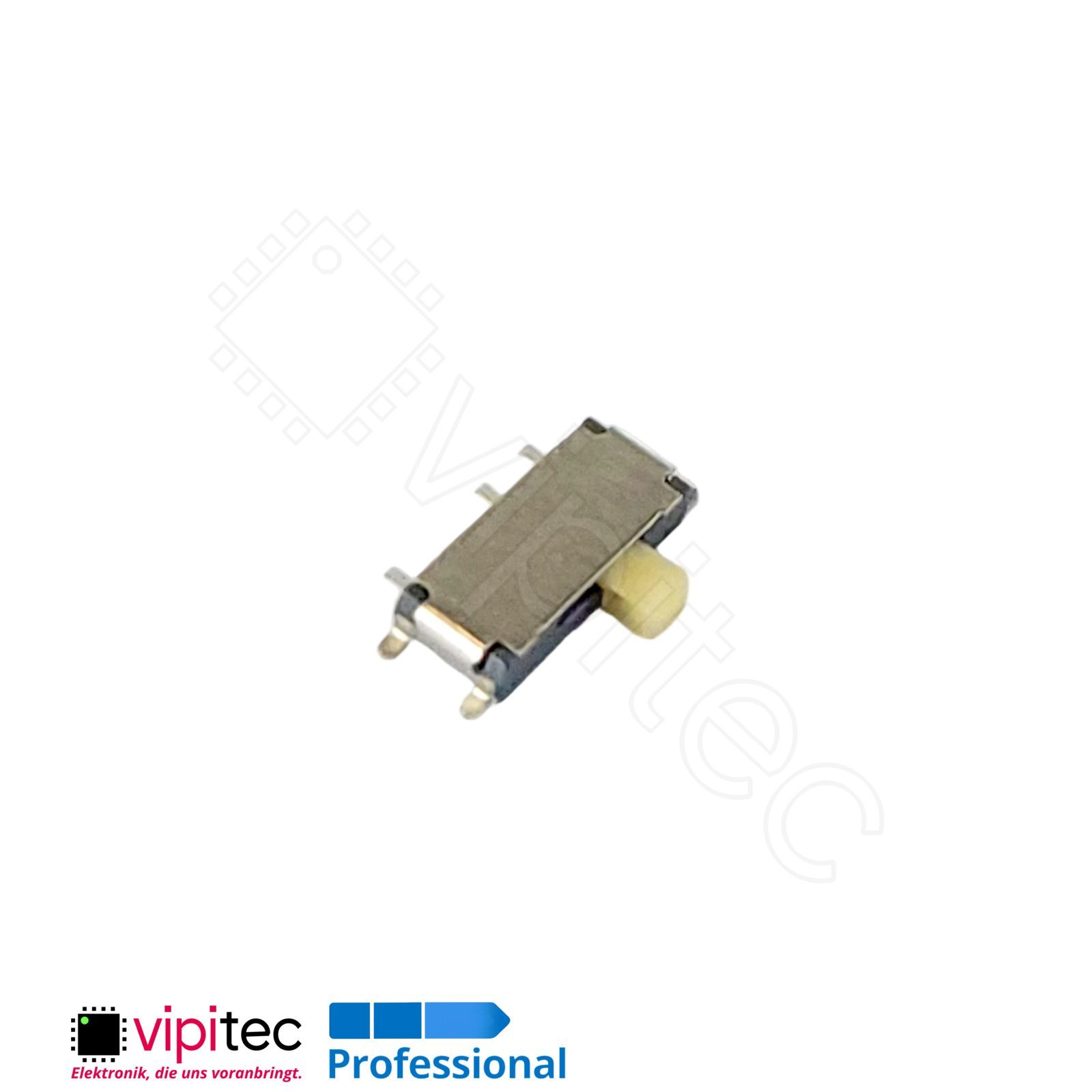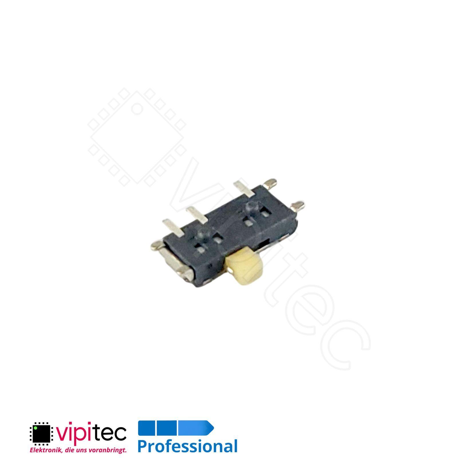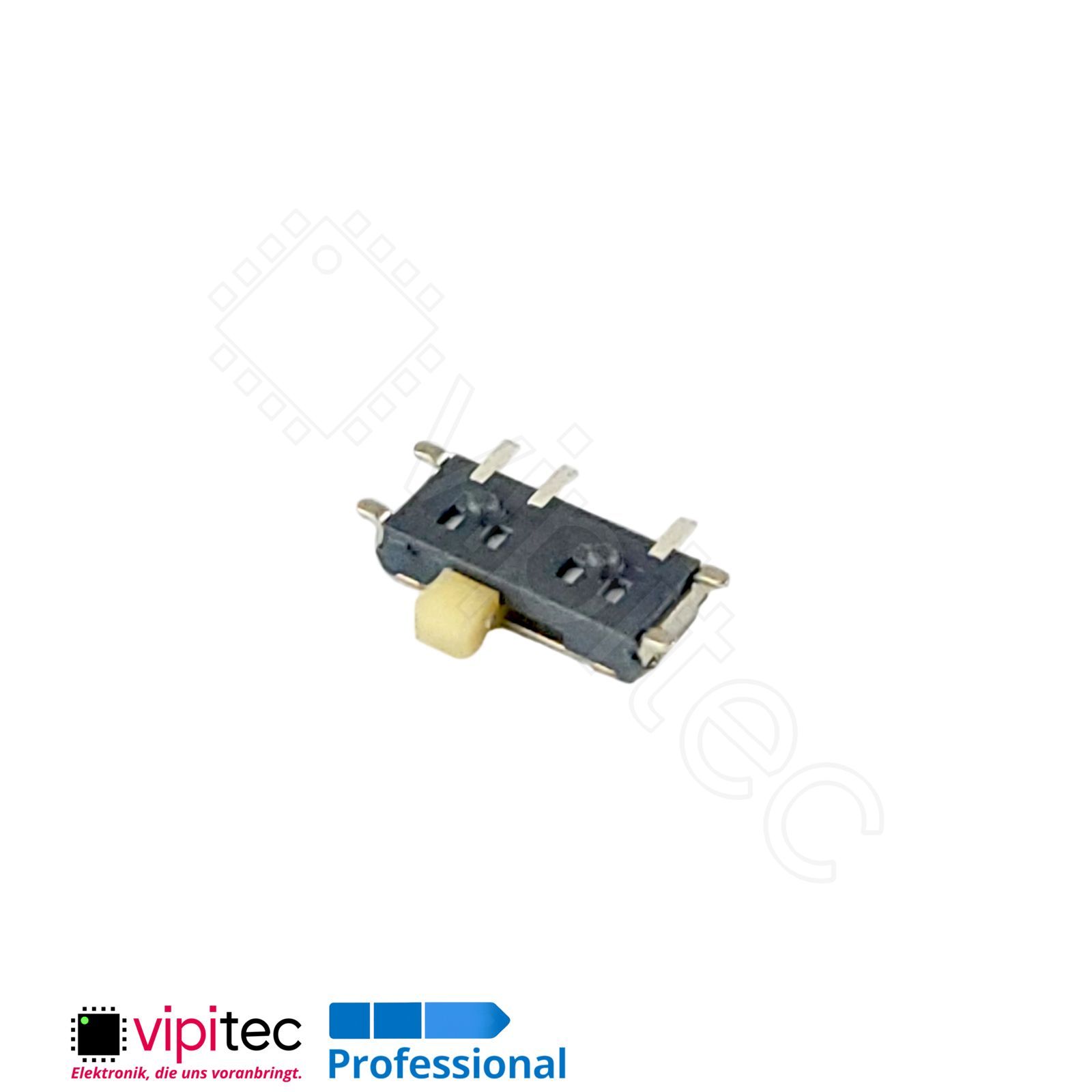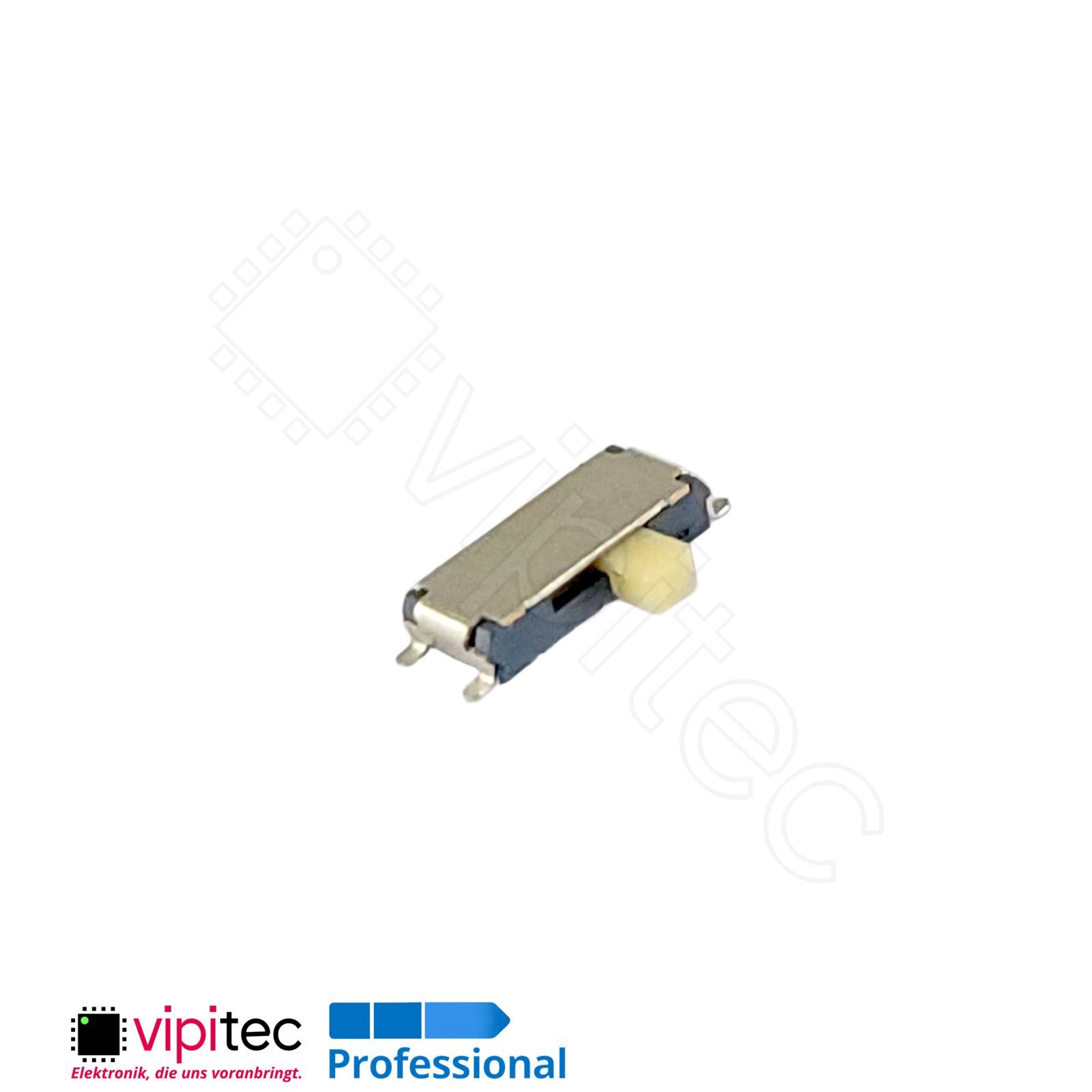 Bei diesem horizontalen SMD-Schiebeschalter handelt es sich um einen einpoligen Zweiweg?(SPDT) Umschalter in kompakter Bauform. Ein SPDT?Schalter (Single Pole, Double Throw) verbindet einen gemeinsamen Kontakt wahlweise mit zwei anderen Kontakten und eignet sich damit zur Umschaltung zwischen zwei Signalleitungen oder zur Auswahl von Betriebsarten. Der Schalter ist als Micro-/Miniaturausführung konzipiert und bringt die Funktionalität eines klass