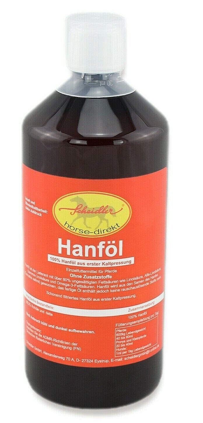 horse-direkt Hanföl 1 Ltr. - Für Pferde & Hunde -Omega 3 und 6 Fettsäuren-Barföl