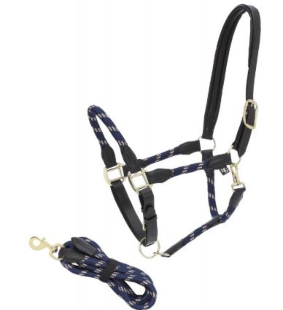 Horse Guard Lederhalfter mit Leadrope braun/navy rund geflochten PONY