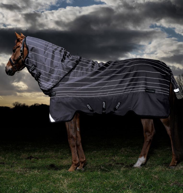 Sichtbar sein heißt sicher sein! Die Amigo® Bravo 12 Reflectech Plus Turnout (100g Light) mit abnehmbarem Halsteil bietet beides und schützt dein Pferd darüber hinaus auch noch vor den Elementen. In den Polyester-Außenstoff ist reflektierendes Garn eingewebt, welches die Sichtbarkeit erhöht. Die Ami