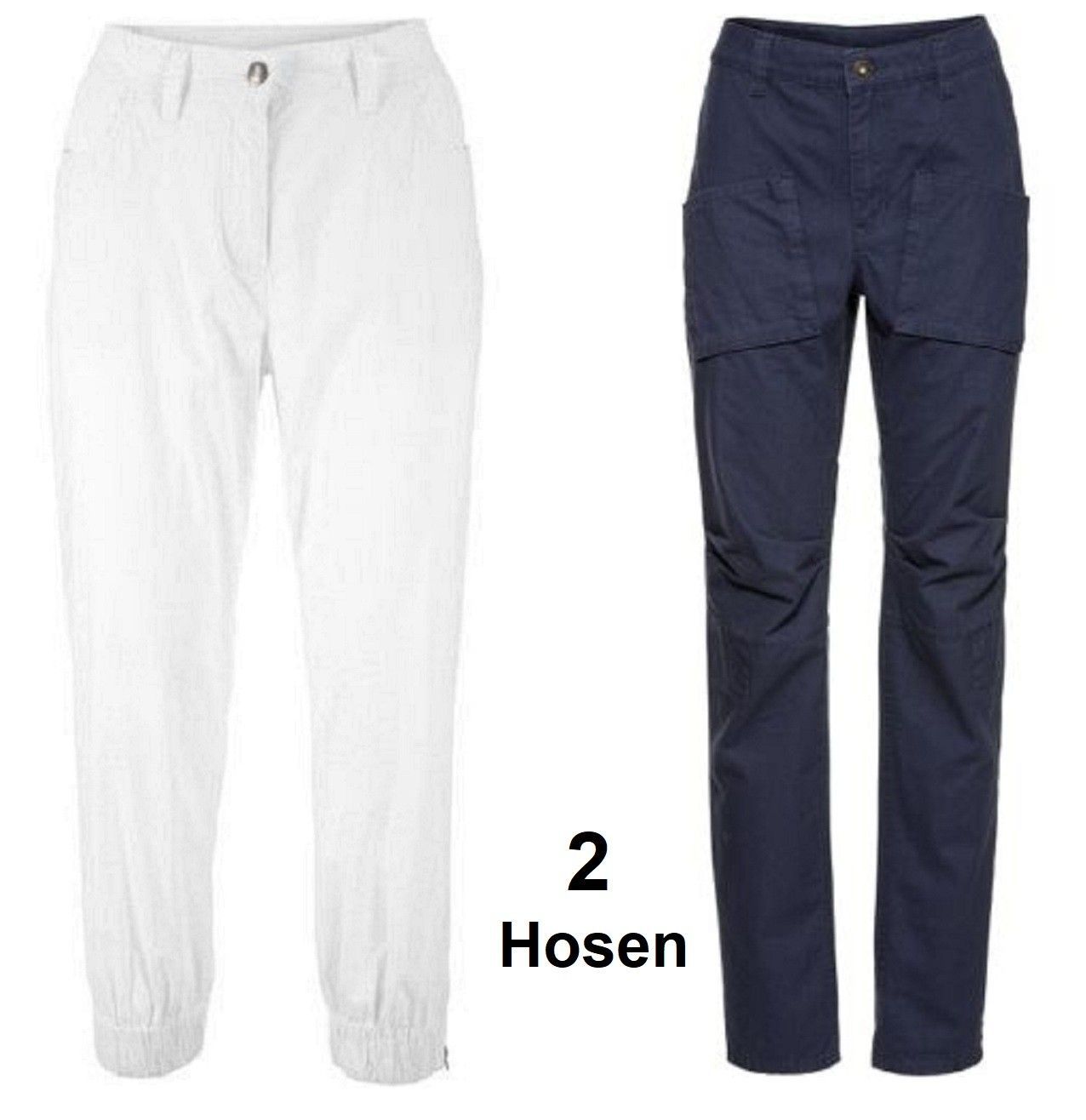 Hose Damen 2 Stück Gr. 42 NEU und ungetragen. Produkte renommierter Hersteller und Versandhäuser zu sensationellen Preisen Sie bekommen 2 Hosen. 1- Caprihose bpc B4°5291 Gr. 42. Farbe: weiß. Marke: bpc Bonprix Selection. Stil: Caprihosen 97% Baumwolle, 3% Elasthan. Normalgröße: 42. Innenbeinlänge: 58 cm 2- Loose-Fit "dunkelblau" Gr. 42. Farbe: dunkelblau. Gute robuste Qualität. Bequem!