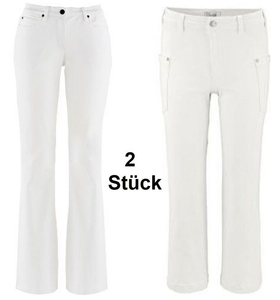 Hose Damen 2 Stück Jeans weiß Gr. 42 NEU und ungetragen. Farbe: weiß Produkte renommierter Hersteller und Versandhäuser zu sensationellen Preisen Sie bekommen 2 Hosen. 1- John Bauer B4°5260 Bootcut Stretch-Jeans Marke: John Bauer. B4°5260. Stil: Bootcut-Jeans 98% Baumwolle, 2% Elasthan. Größe: 42. Innenbeinlänge: 86 cm 2- Heine B4°6282 Caprijeans Culotte in offwhite Marke: Heine. B4°6282. Stil: Caprijeans 98% Baumwolle, 2% Elasthan. Größe: 42. Innenbeinlänge: 60 cm