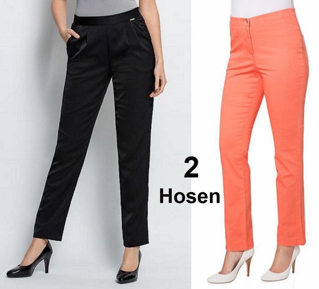 Hose Damen Gr. 24/48 2 Stück Neu mit Etikett. Bequem und chic! Sie bekommen 2 Hosen 1- Gerade Webhose mit Bundfalten Größe 48. Farbe: schwarz. Material: 80% Baumwolle, 20% Polyester. 2- Hose Damen "moni". Bunt und chic! Farbe: koralle. Größe 24 (=48). Komfortbundhose mit Schlanknaht "koralle". Material: 74% Baumwolle, 24% Polyester, 2% Elasthan