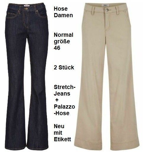 Hose Damen Normalgröße 46, 2 Stück Stretch-Jeans + Palazzo-Hose. Neu mit Etikett.