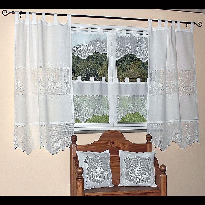 Hossner Hirsch Gardine Baumwolle Gehäkelt Landhaus Handarbeit