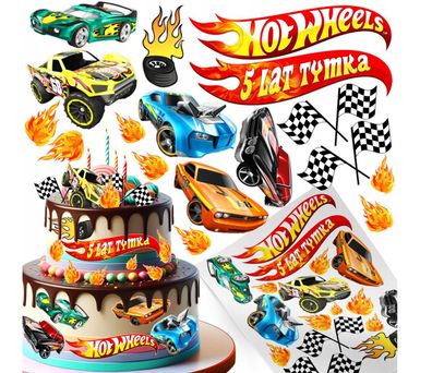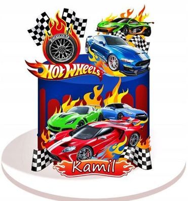 • Hot Wheels Essbar Rennwagen Tortenaufleger Torte Geburstag Zuckermasse + NAME