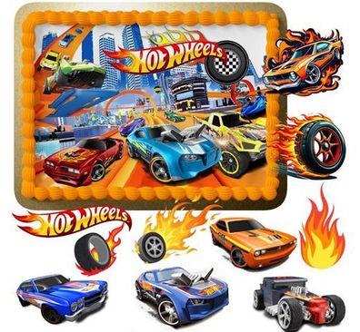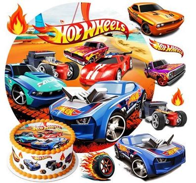 • Hot Wheels Essbar Autos Tortenaufleger Torte Geburstag Zuckermasse Tortebild