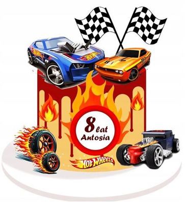 • Hot Wheels Rennen Essbar Tortenaufleger Torte Geburstag Zuckermasse + NAME