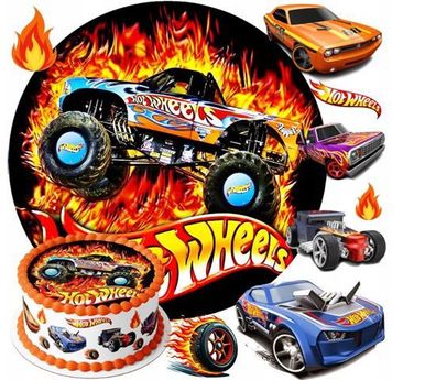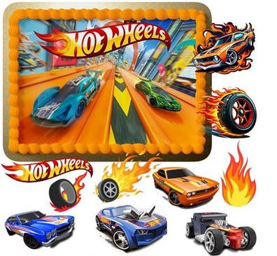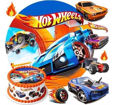 • Hot Wheels Essbar Tortenaufleger Torte Geburstag Zuckermasse Tortebild