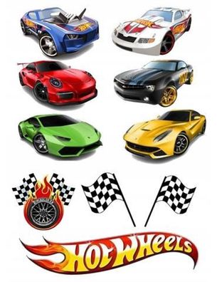 • Hot Wheels Rennwagen Essbar Zuckermasse Tortenbild Tortenaufleger + 4 Muffin01