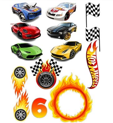 • Hot Wheels Rennwagen Essbar Tortenaufleger Torte Geburstag Zuckermasse + NAME10