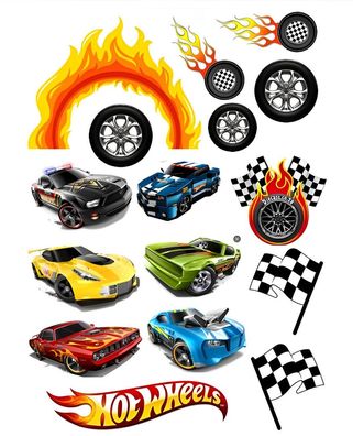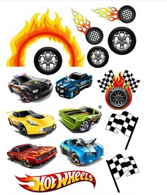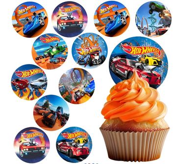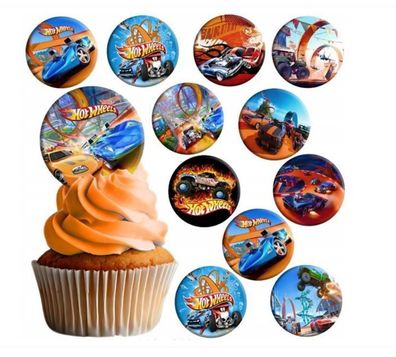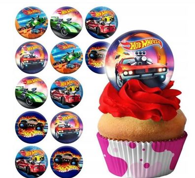 • Hot Wheels Essbar 12 Muffin Zuckermasse Tortenbild Tortenaufleger