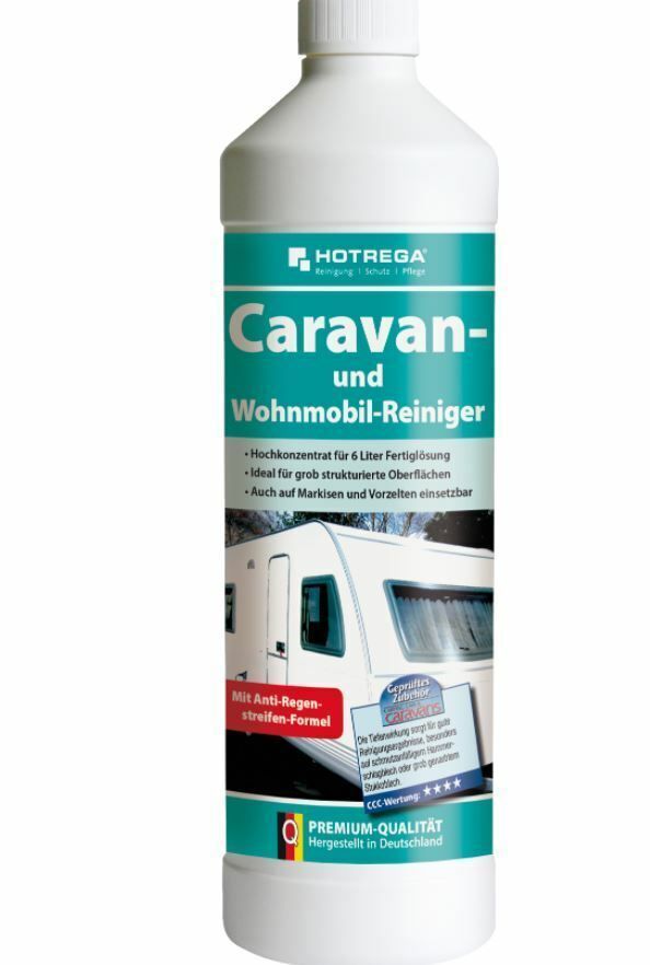 HOTREGA® Caravan – und Wohnmobil – Reiniger Entfernt mühelos schwarze Regenstreifen und Grauschleier 1000 ml - Flasche Entfernt mühelos schwarze Regenstreifen und Produktbeschreibung HOTREGA® Caravan - und Wohnmobil - Reiniger - 1000 ml – Flasche • Hochkonzentrat für 6