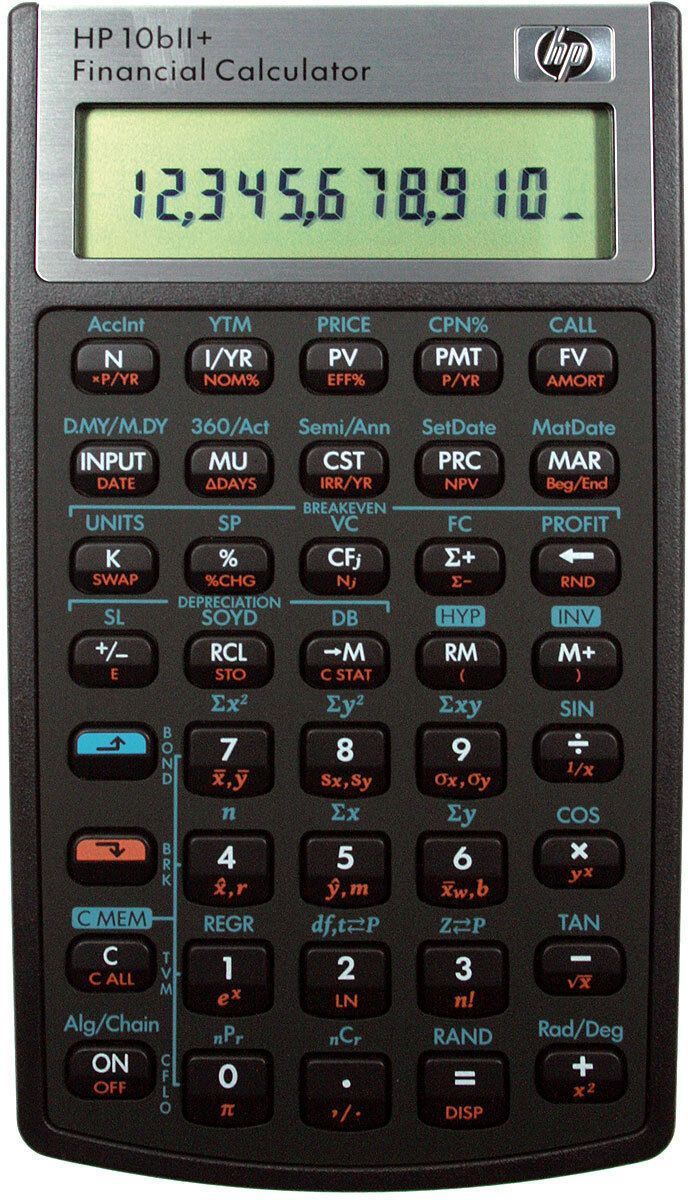HP HP-10 B II Plus Hewlett Packard Finanzrechner Silber-Optik mit Lederetui