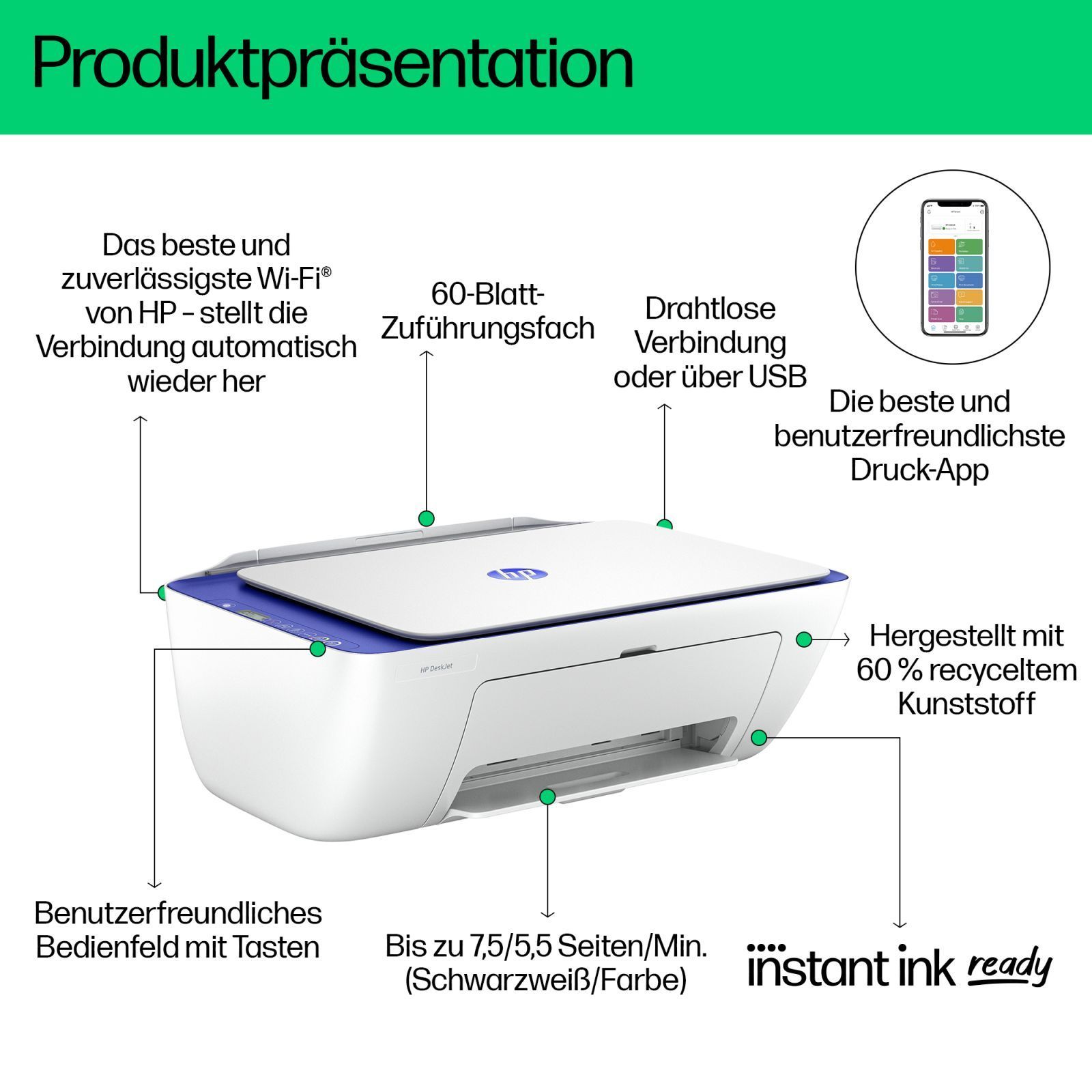 HP HP Deskjet 2821e All-in-One - Multifunktionsdrucker - Farbe - Tintenstrahl - 21... ->