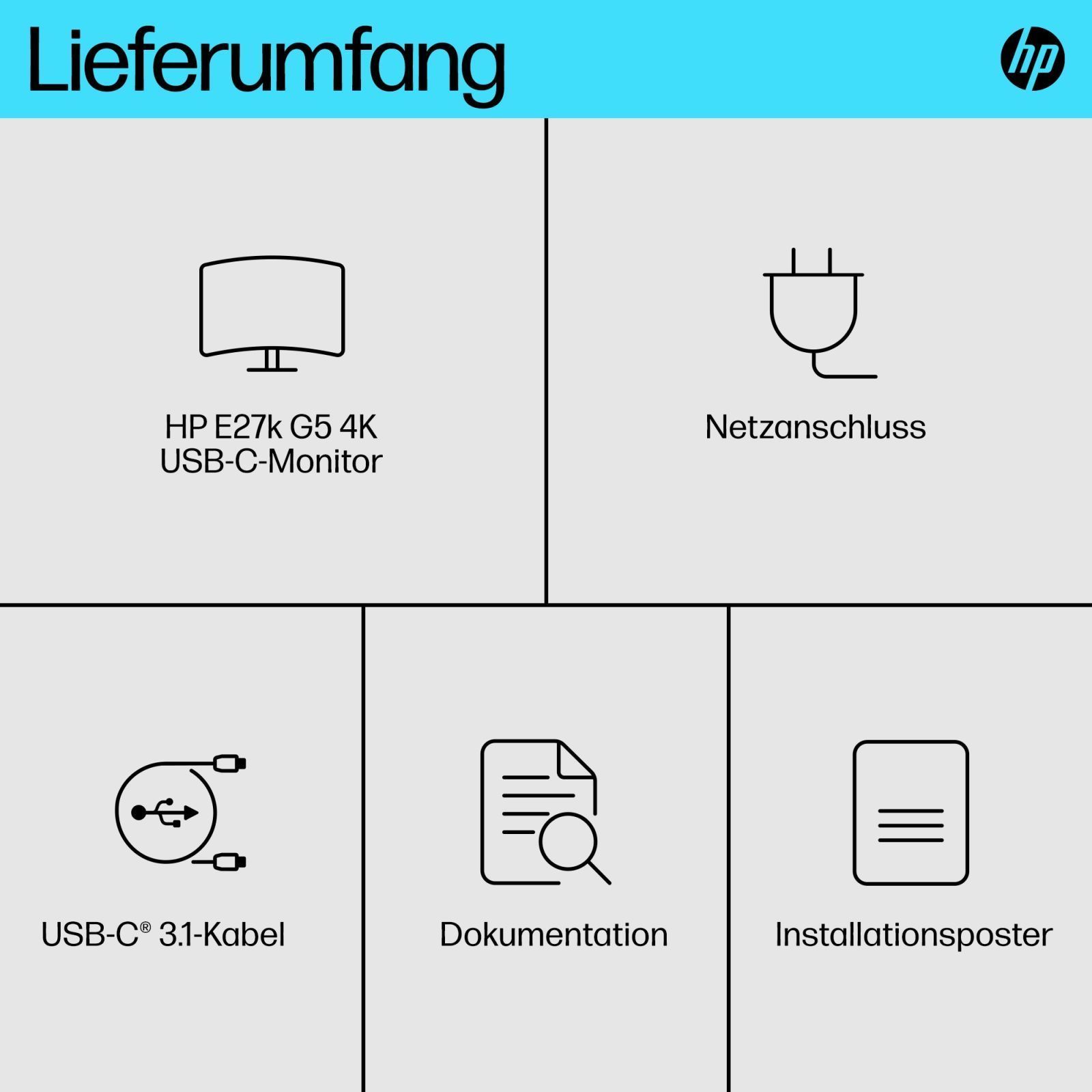 HP HP E27k G5 68,58cm 27Zoll 4K USB-C Monitor 3840x2160 16:9 HDMI DP 3y (EU)