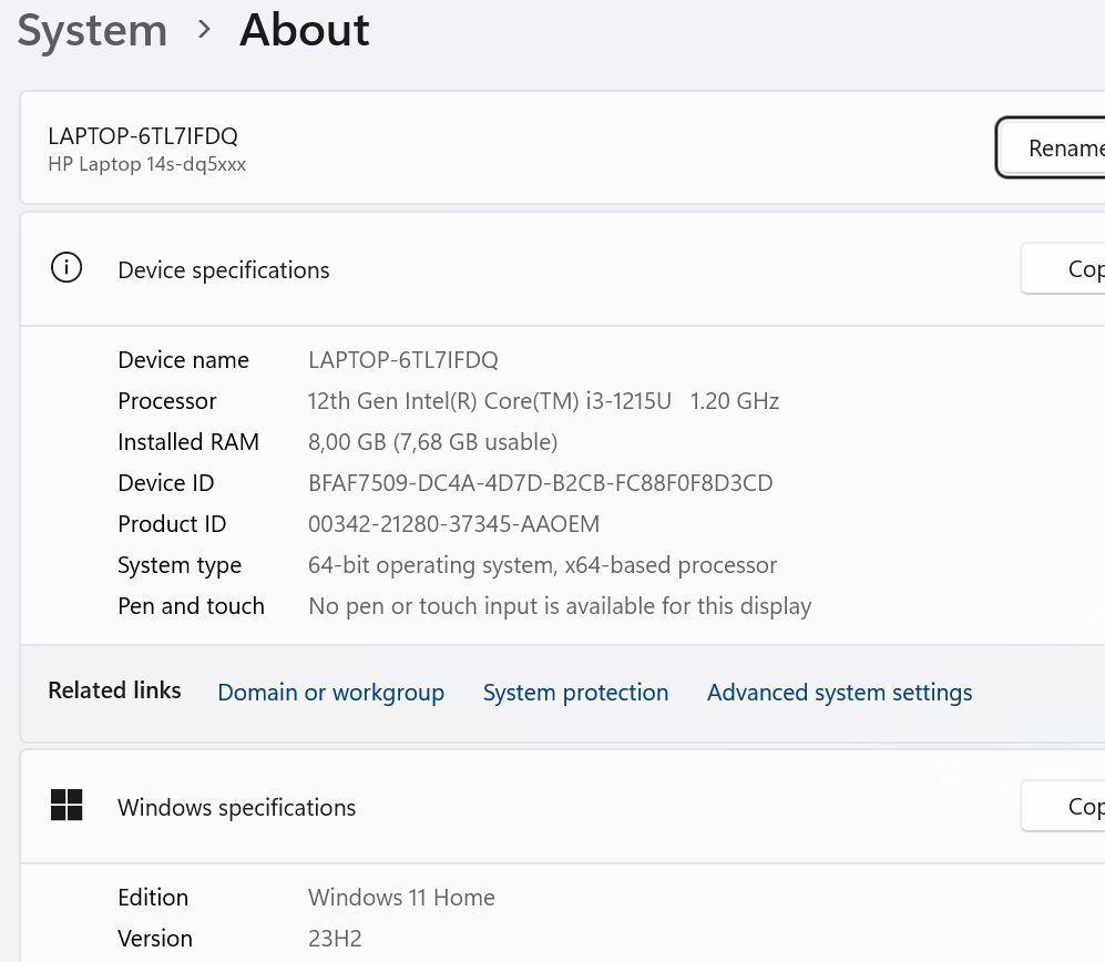 HP Laptop 14s-dq5605nd 14" FHD 256GB SSD Intel Core i3-1215U 8GB RAM