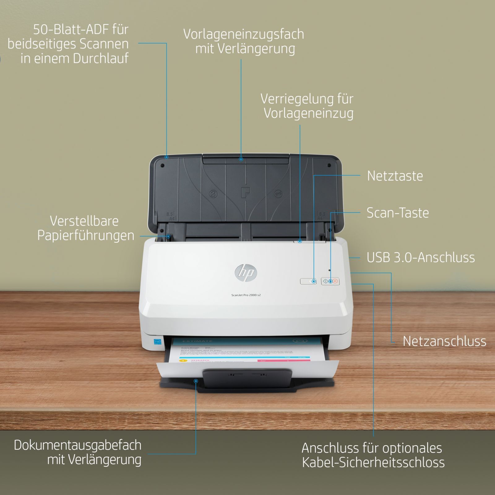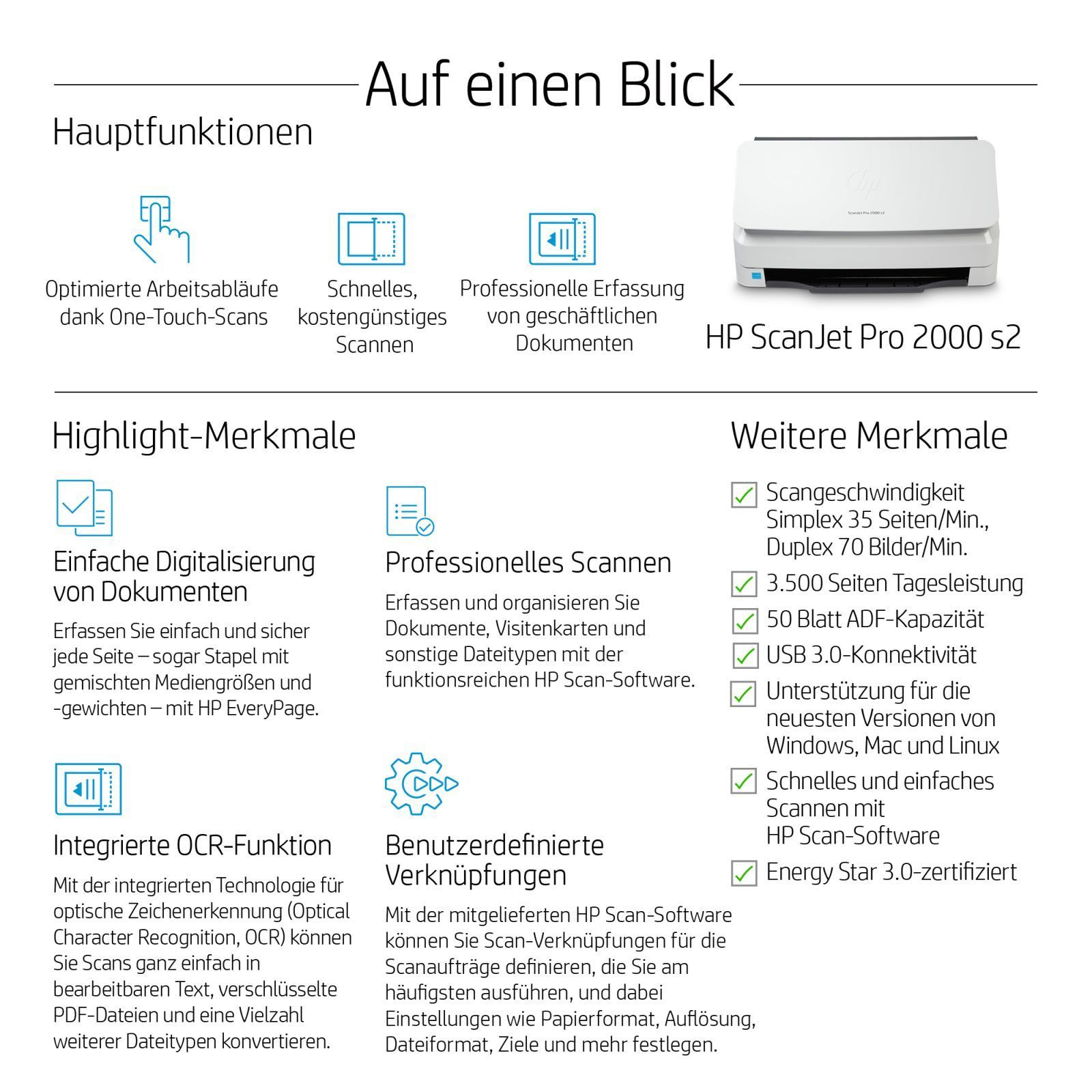 HP HP Scanjet Pro 2000 S2 Scanner 600 X 600 Dpi A4 Black, White (6FW06A)