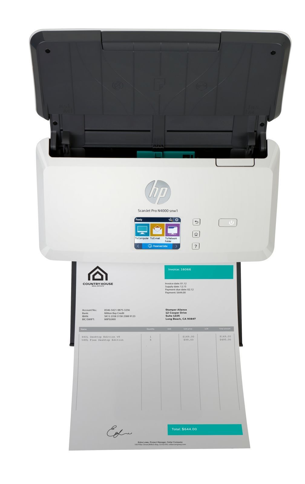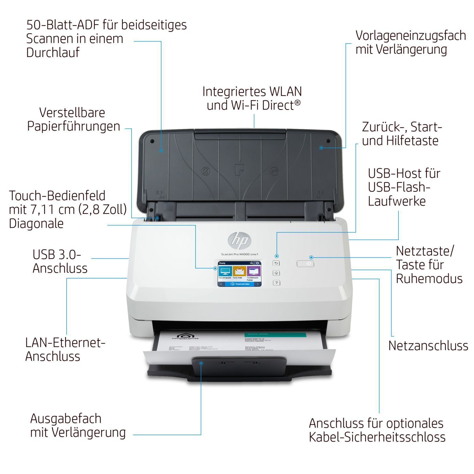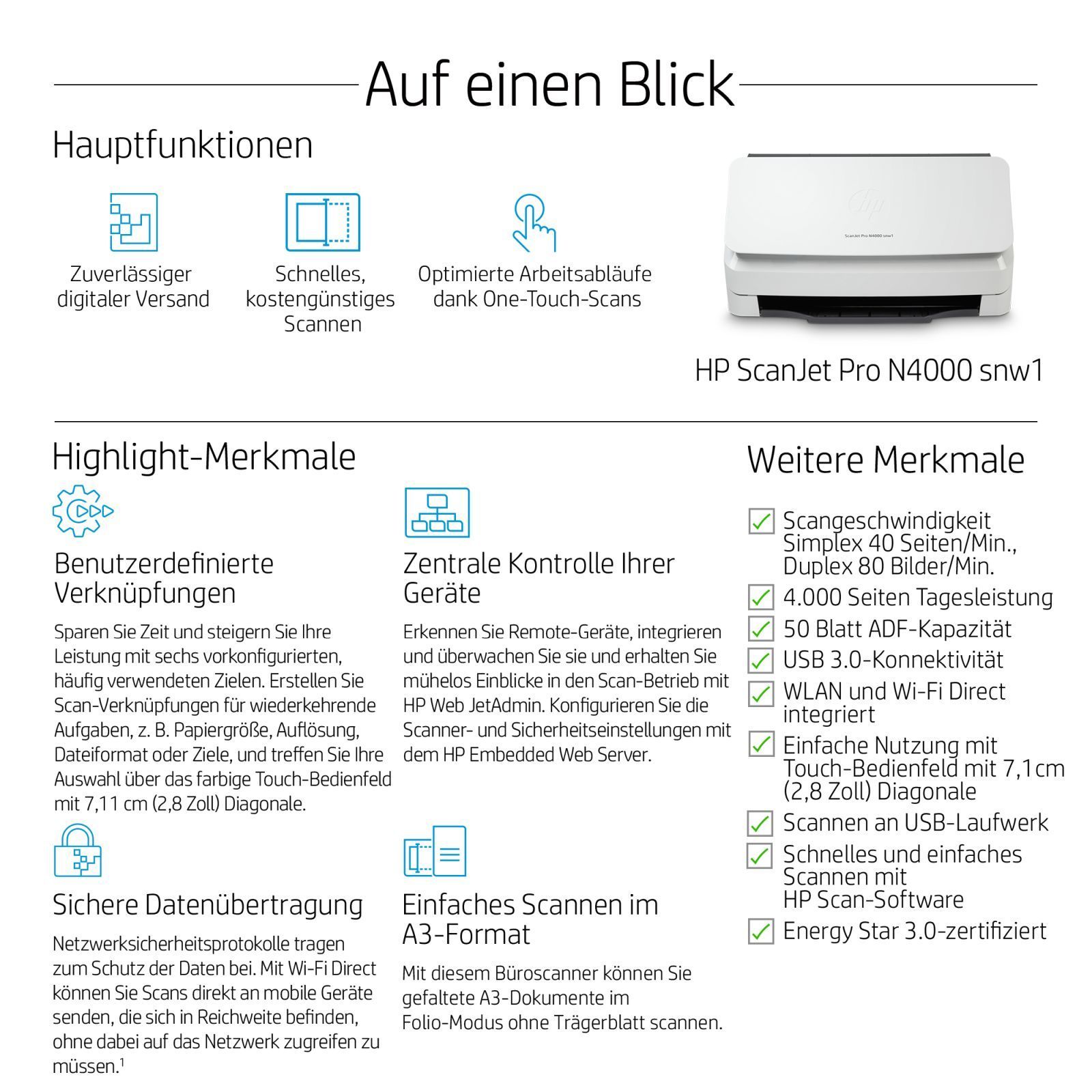 HP HP Scanjet Pro N4000 Snw1 Scanner 600 X 600 Dpi A4 Black, White (6FW08A)