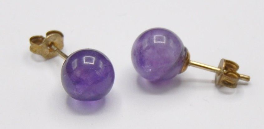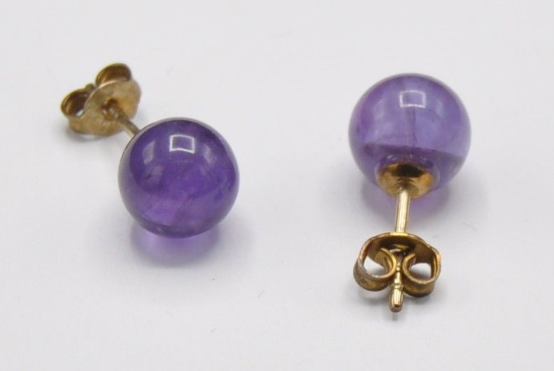 Die Ohrringe sind in einem guten Zustand und wiegen gut 3 Gramm. Die Amethyst Kugeln haben einen Durchmesser von 9 mm. Die Verschlüsse sind 585 gestempelt. Ich habe noch mehr Schmuck eingestellt.