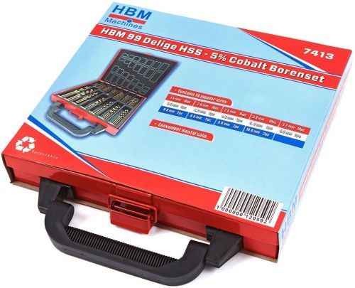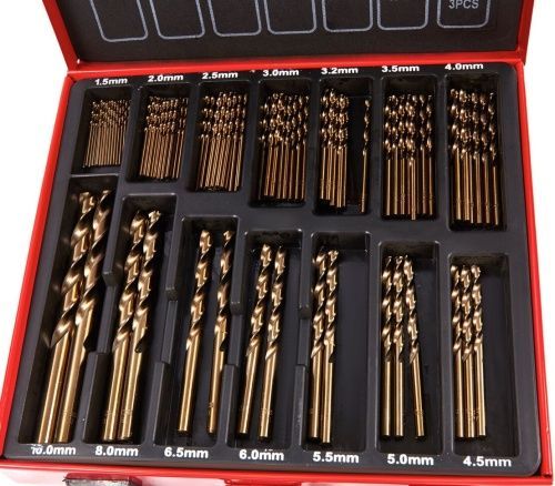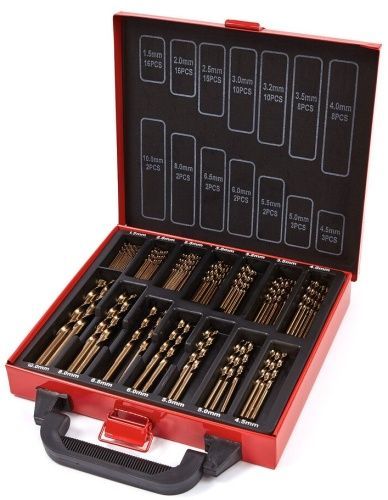 Dieses Bohrerset enthält Bohrer in den Größen 1,5mm, 2mm, 2,5mm, 3mm, 3,2mm, 3,5mm, 4mm, 4,5mm, 5mm, 5,5mm, 6mm, 6,5mm, 8mm, 10mm. Die HSS-Metallbohrer aus diesem Set bestehen zu 5% aus Kobalt und eignen sich zum Bohren in legierten, gehärteten oder rostfreien Stahl.