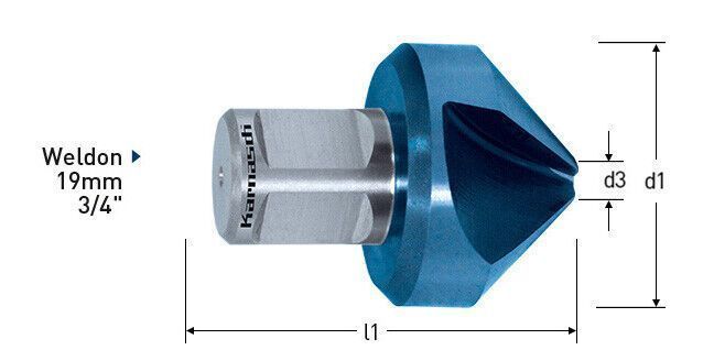 HSS-XE Kegelsenker 90° mit Weldonschaft, beschichtet 3-Schneiden, 25 mm