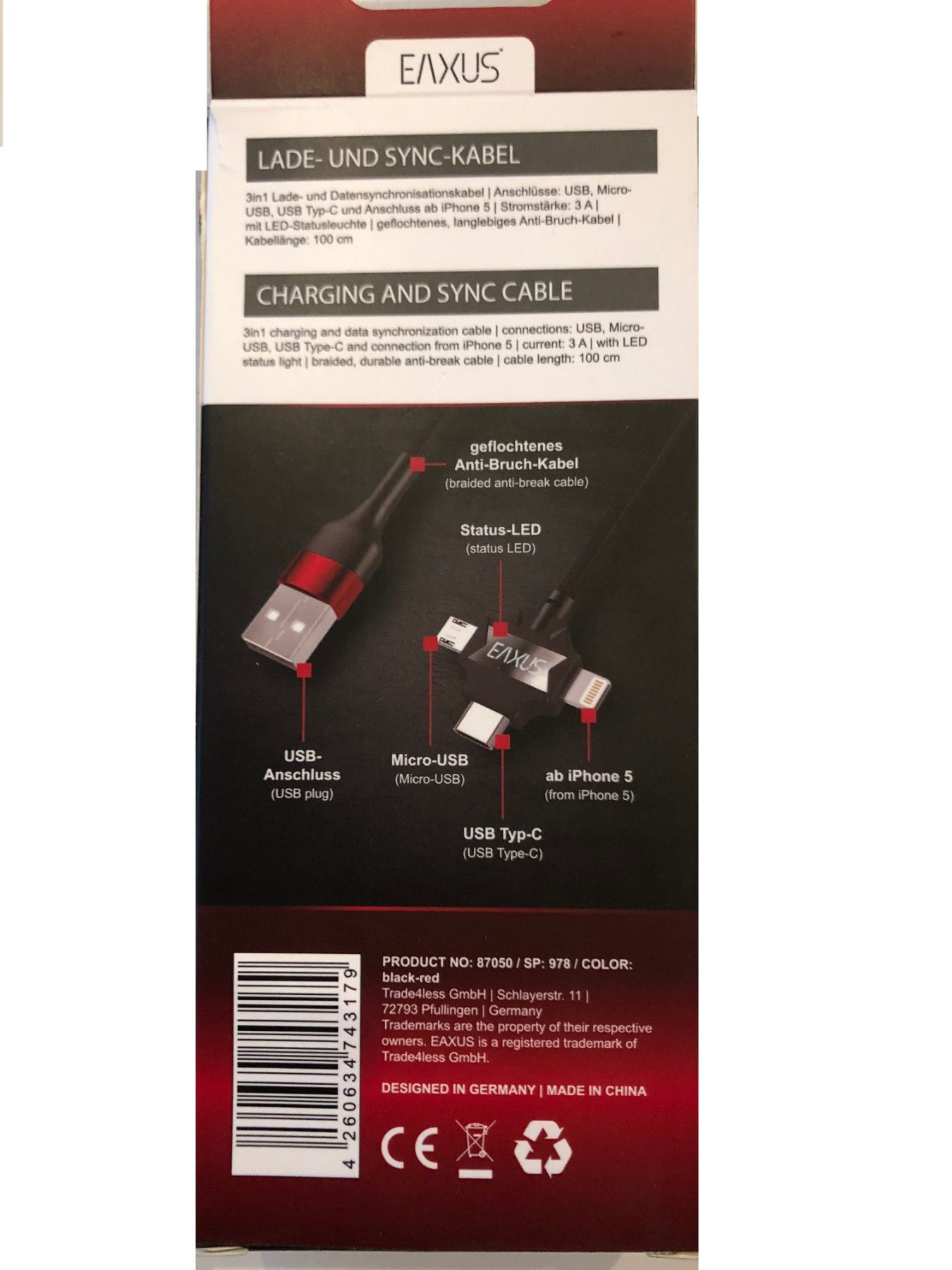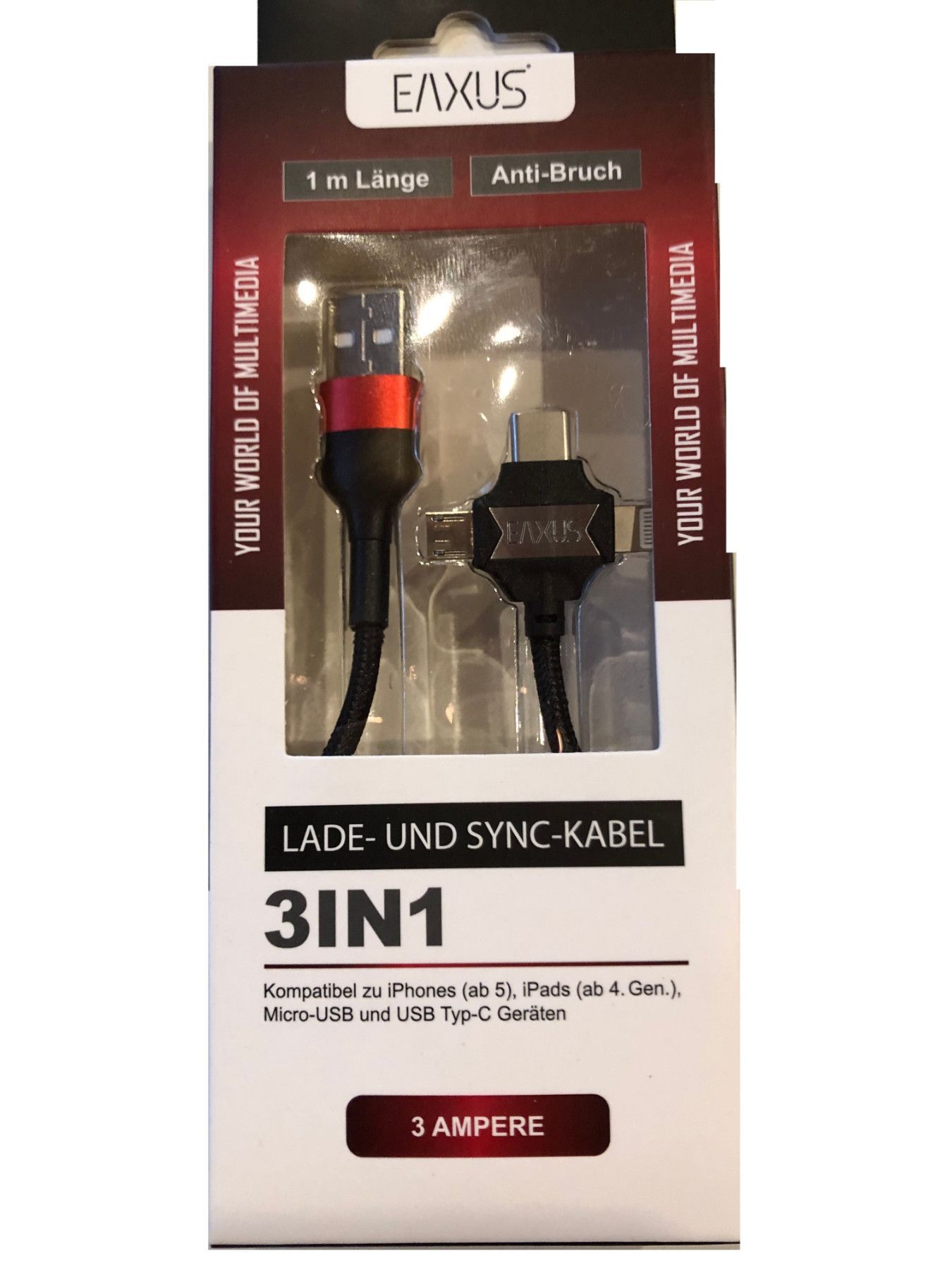 HST 3in1 iPhone Samsung Ladekabel Anti-Bruch LED Lightning Micro-USB Typ-C