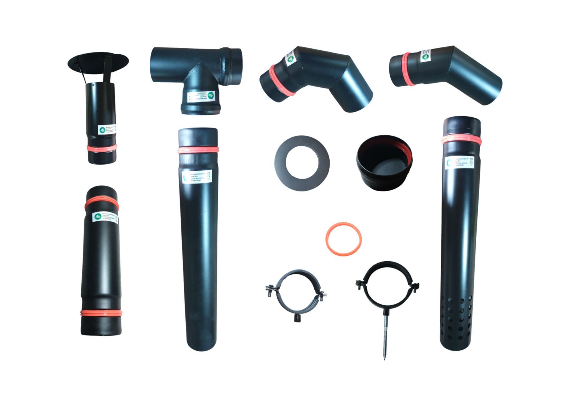HST Ofenrohr Pelletrohr Rauchrohr Pellet Ofen Kamin Bogen DN 80/100 mit Dichtung