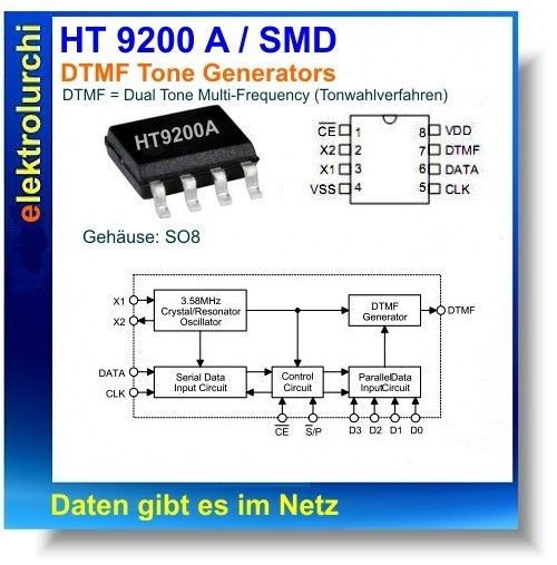 HT9200A - DTMF Tongenerator Tonwahlverfahren HT 9200, SMD SO8, Holtek., 2St.