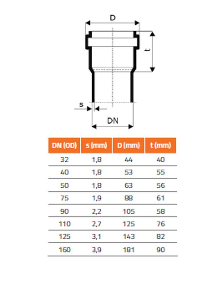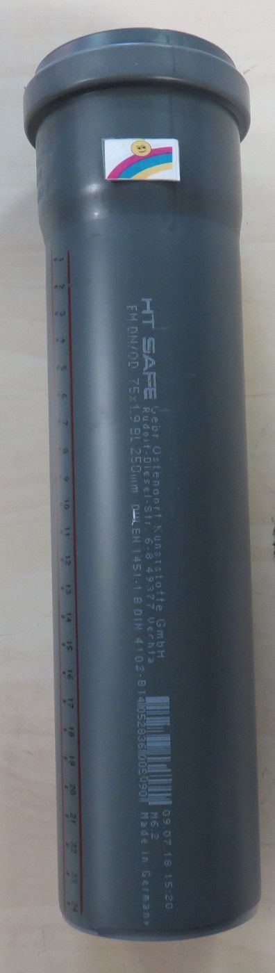 HTsafe Rohr 250 mm DN75 mit 1 Muffe, mit Dichtring HTEM Schallschutz 21dB