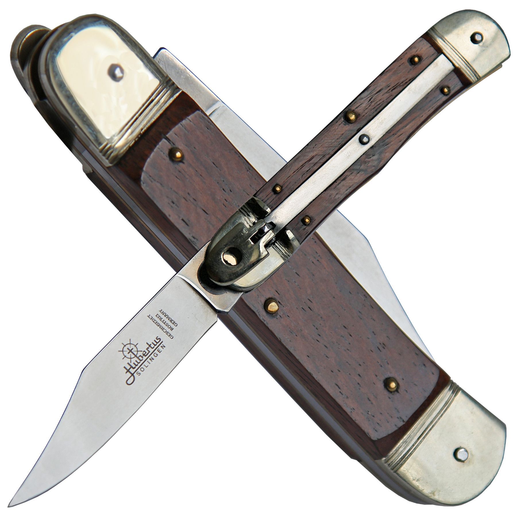 Hubertus großes Springmesser mit Rosenholzschalen Sicherung Hebelschloss (18 + )
